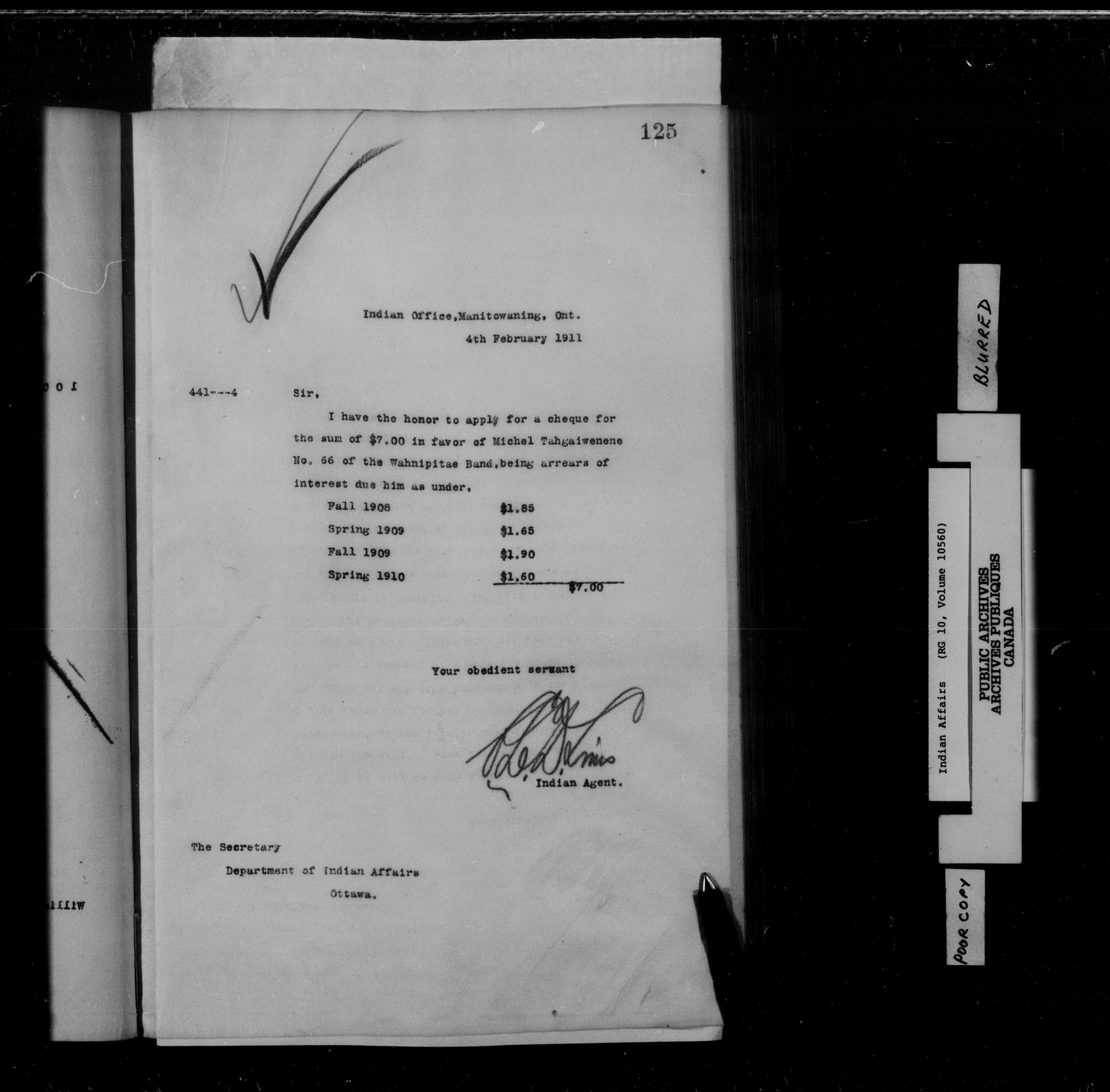 Department of Indian Affairs : Manitoulin Island District Office, letterbooks : C-15261