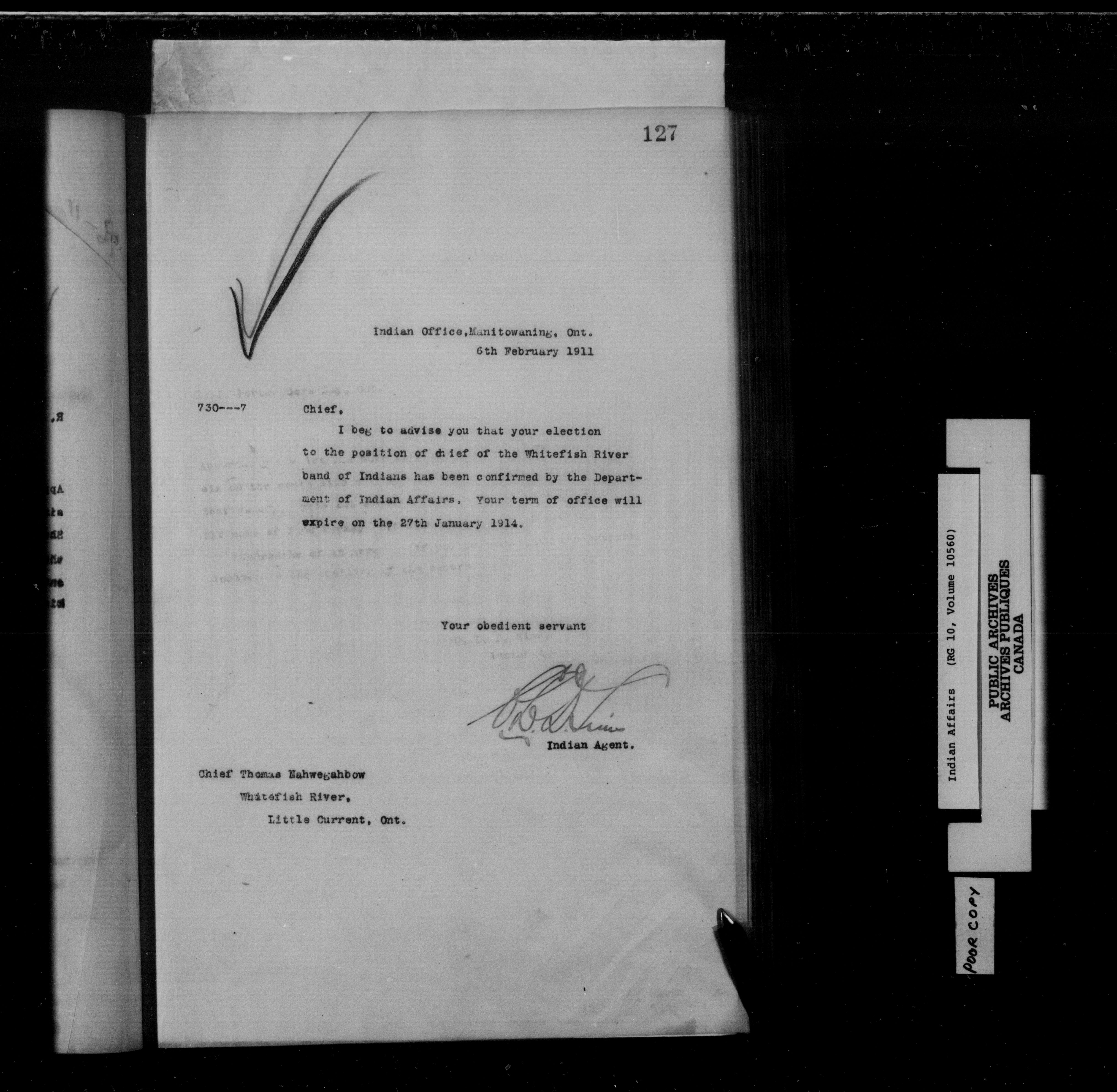 Department of Indian Affairs : Manitoulin Island District Office, letterbooks : C-15261