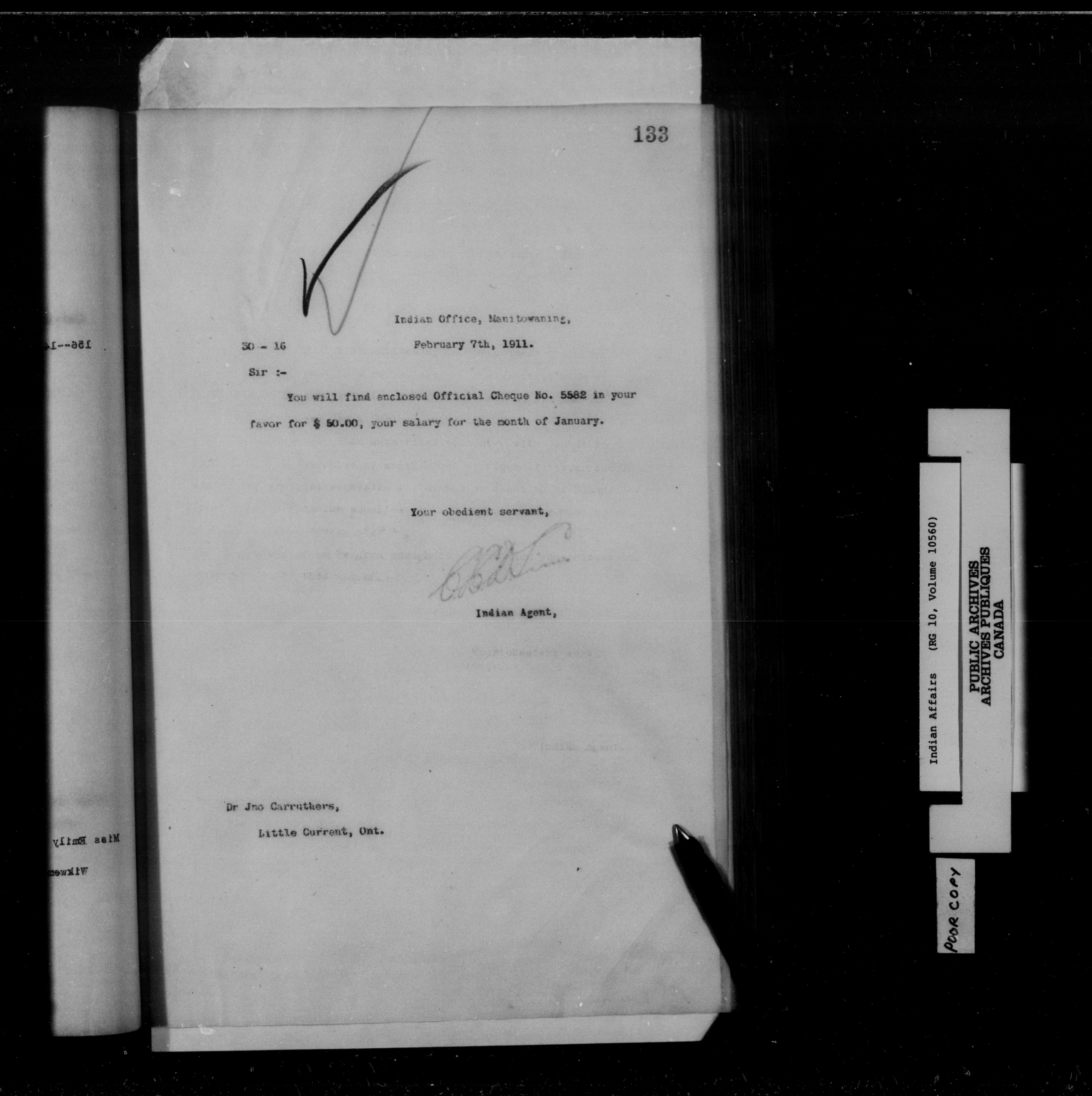 Department of Indian Affairs : Manitoulin Island District Office, letterbooks : C-15261
