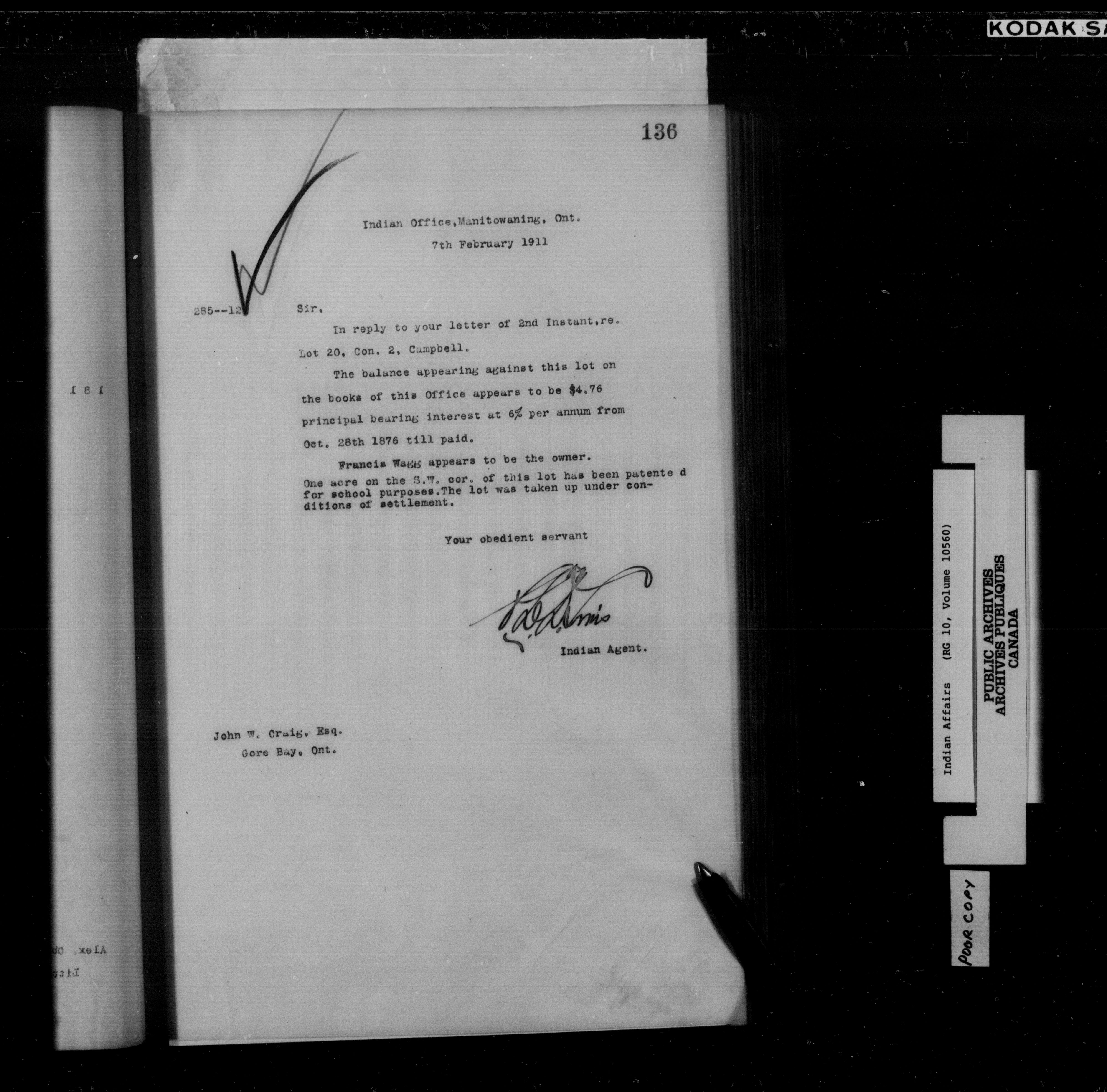 Department of Indian Affairs : Manitoulin Island District Office, letterbooks : C-15261