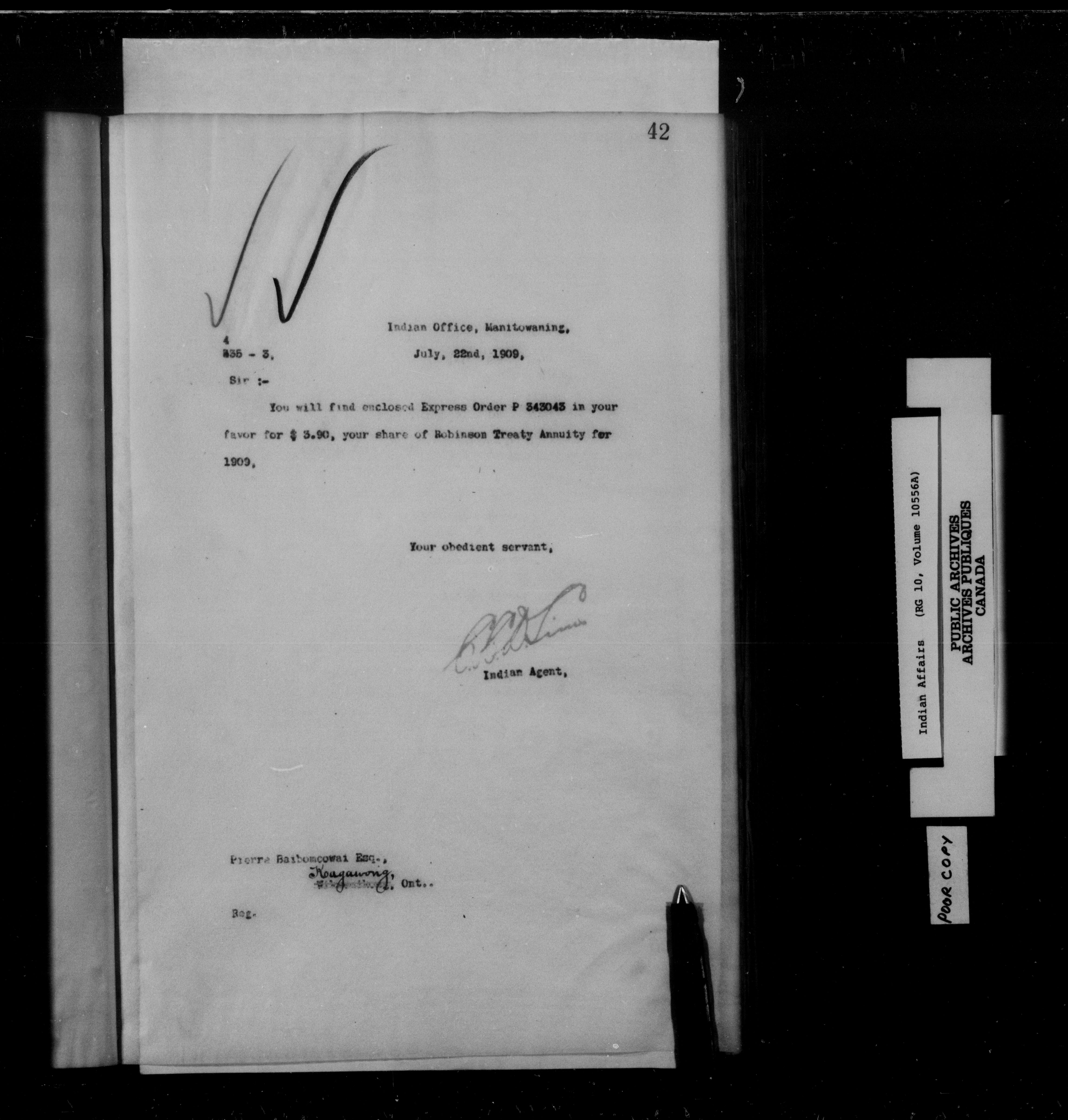 Department of Indian Affairs : Manitoulin Island District Office, letterbooks : C-15261
