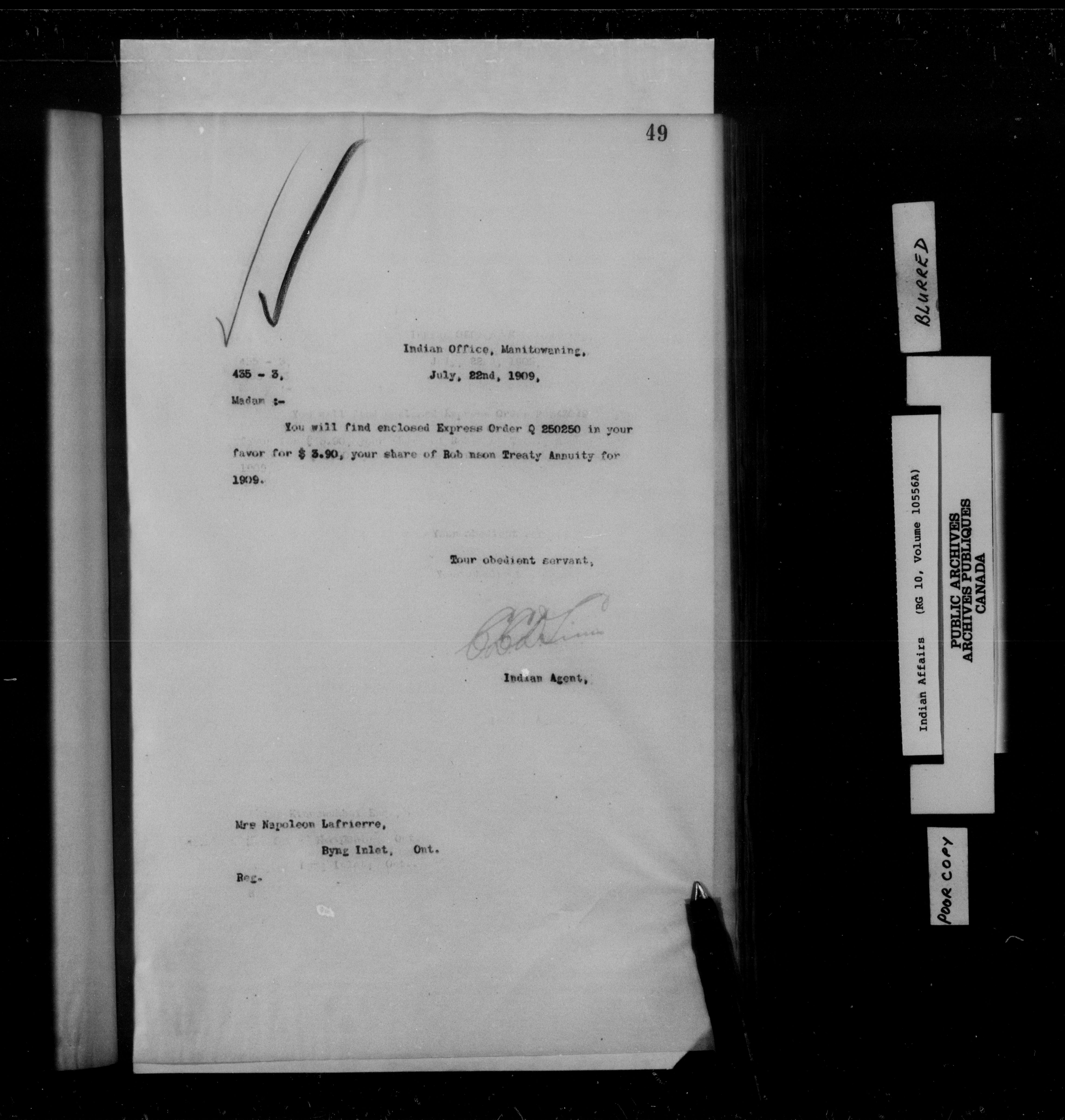 Department of Indian Affairs : Manitoulin Island District Office, letterbooks : C-15261