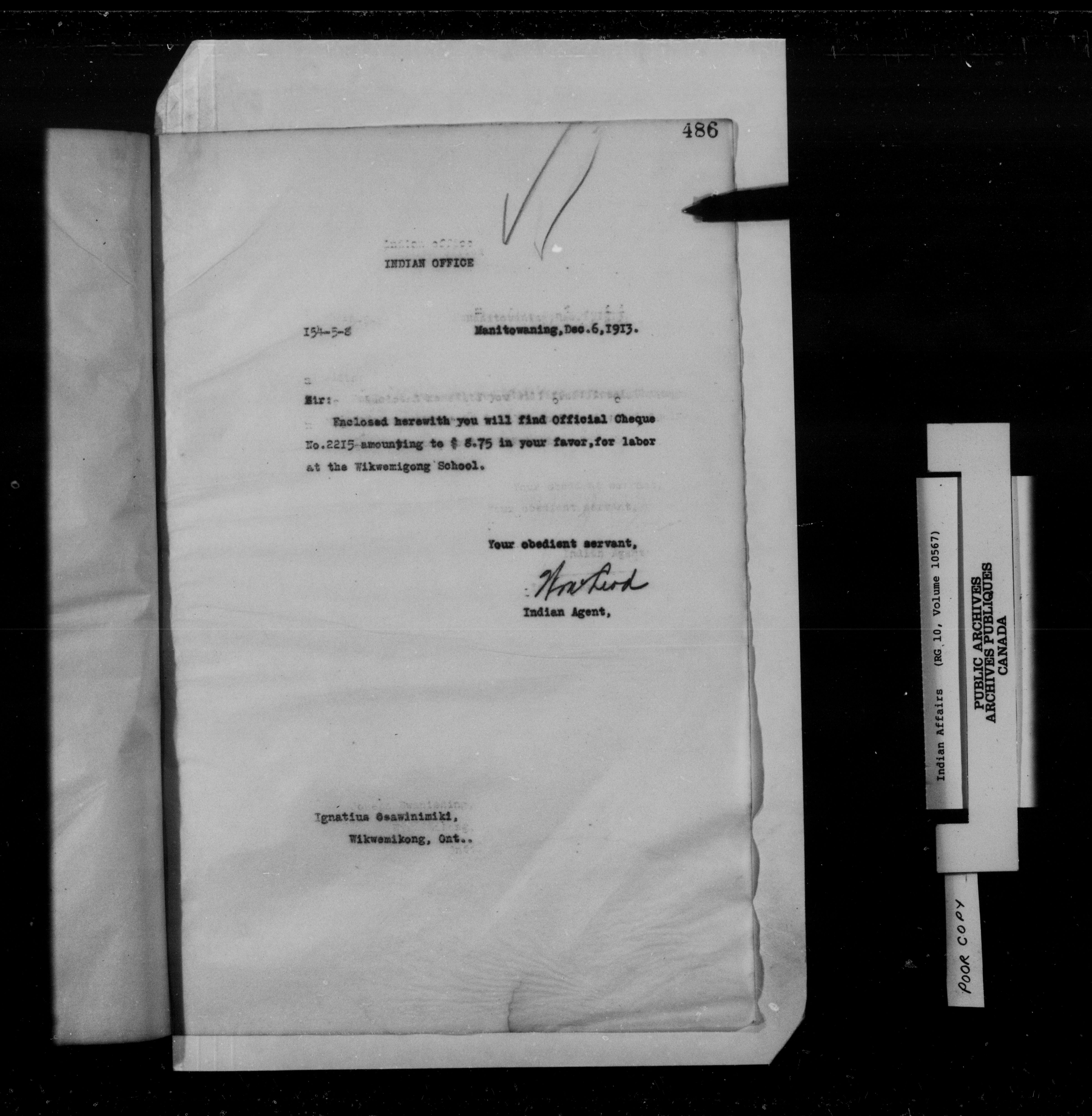 Department of Indian Affairs. Manitoulin Island District Office : letterbooks - 15263