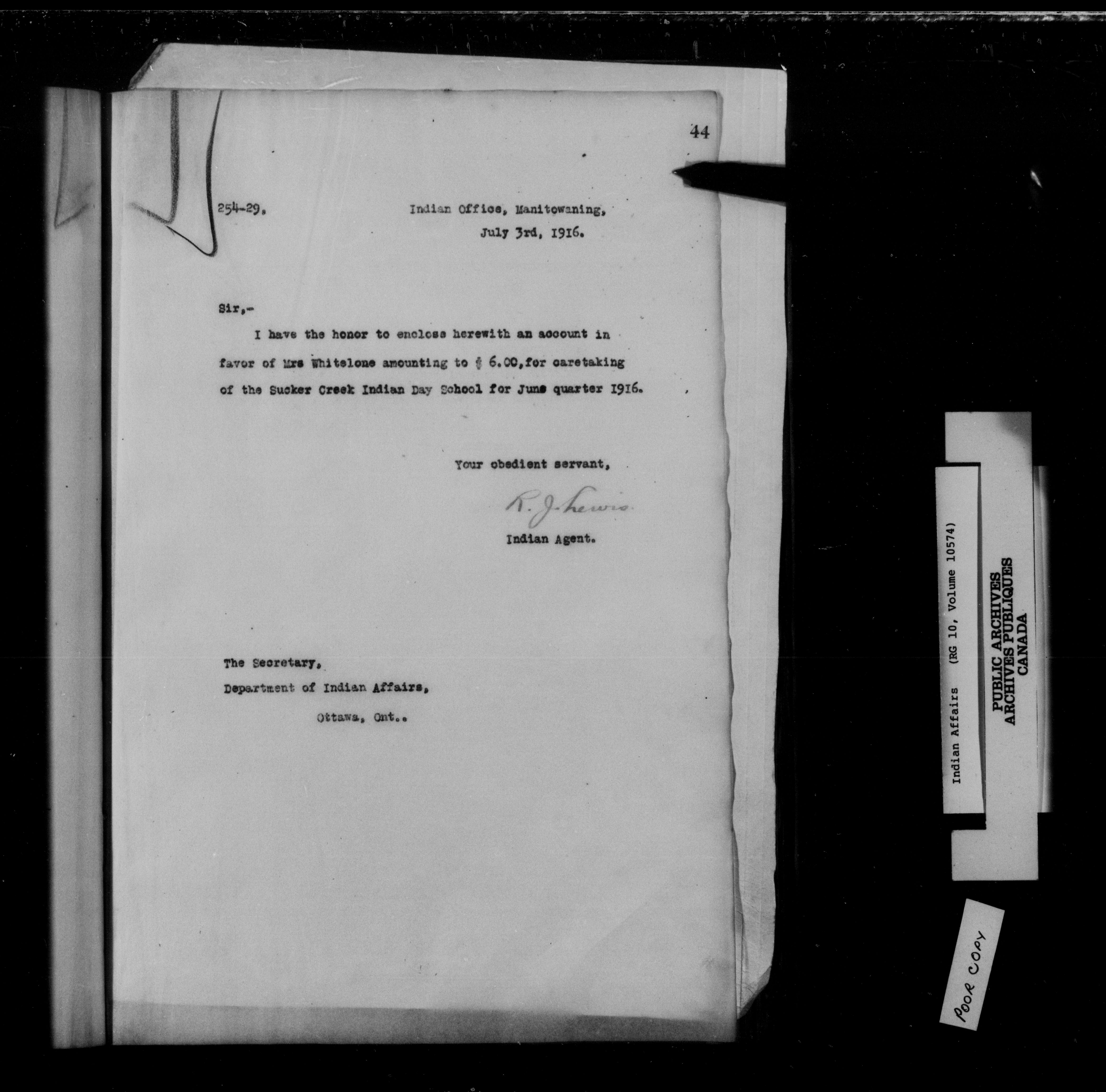 Department of Indian Affairs : Manitoulin Island District Office, letterbooks : C-15266
