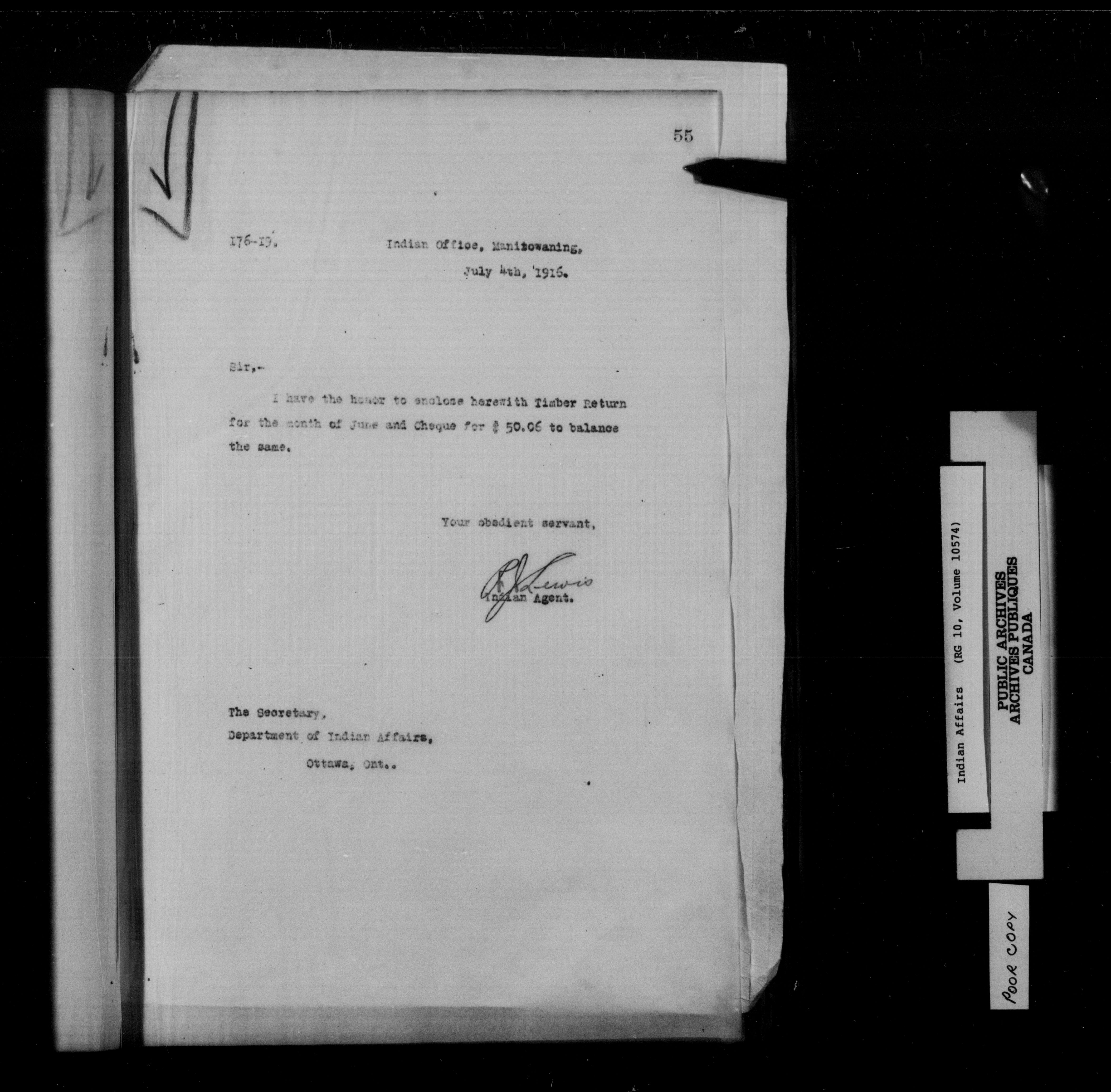 Department of Indian Affairs : Manitoulin Island District Office, letterbooks : C-15266