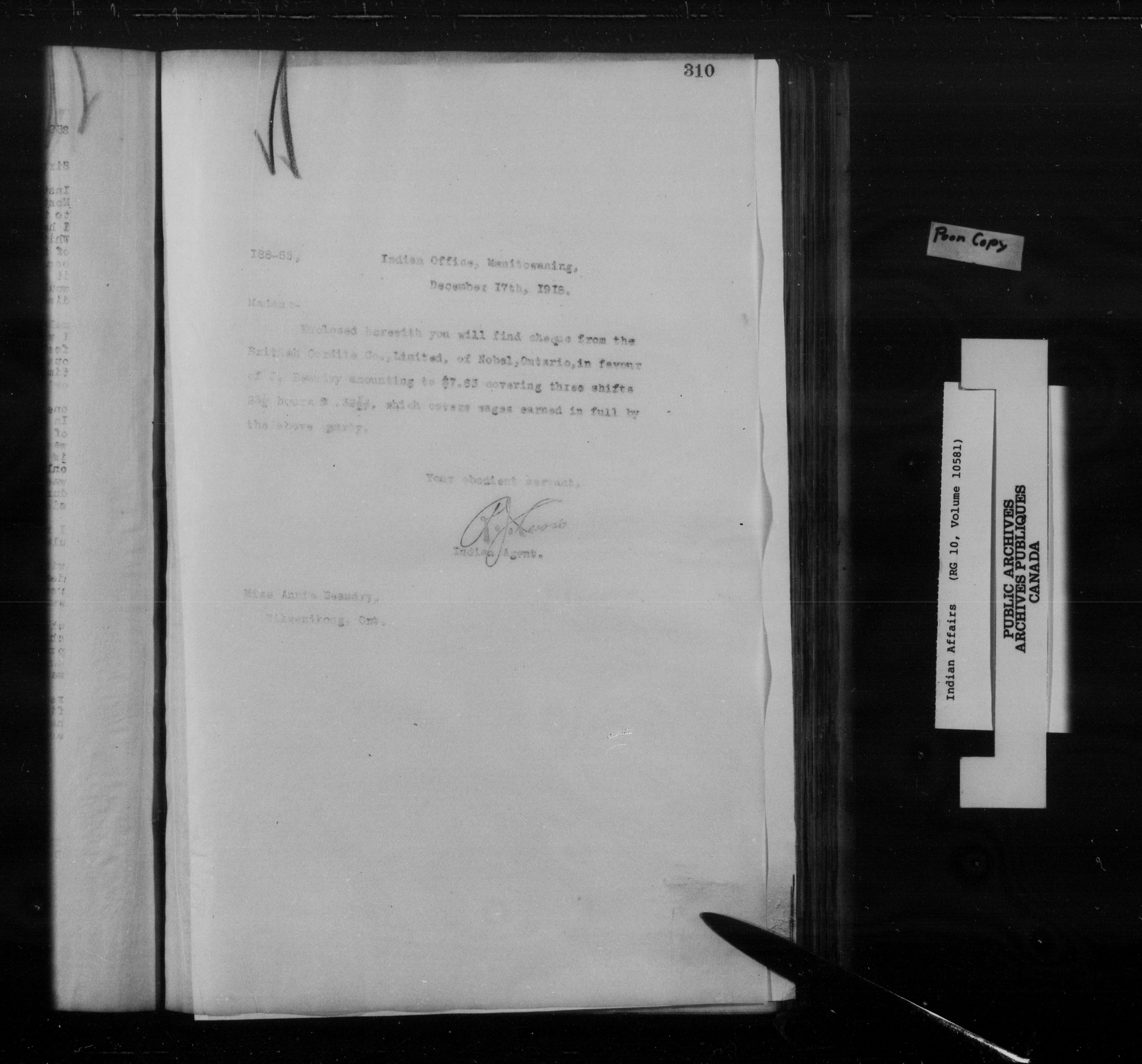 Department of Indian Affairs : Manitoulin Island District Office, letterbooks : C-15268