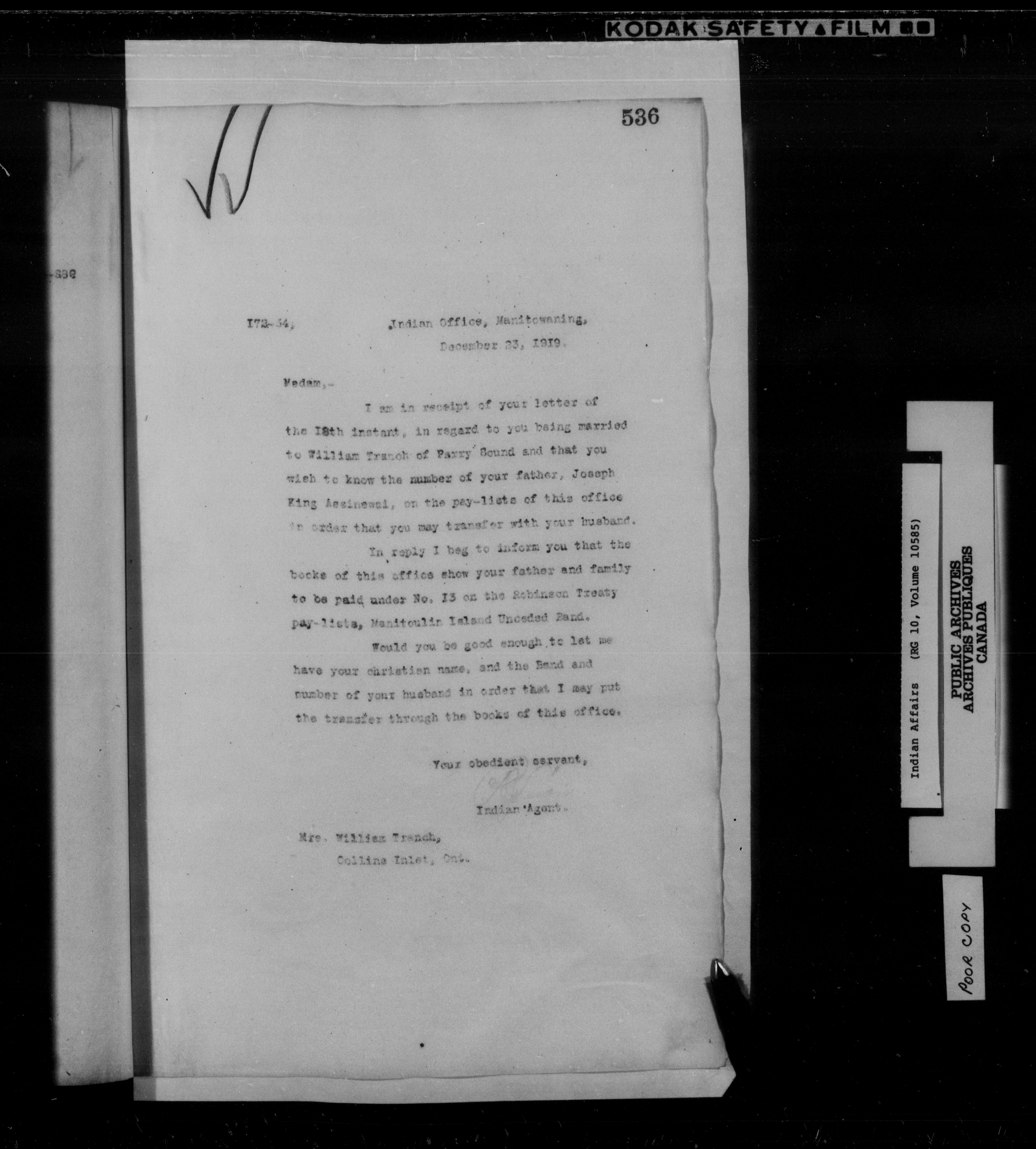 Department of Indian Affairs. Manitoulin Island District Office : letterbooks - 15269