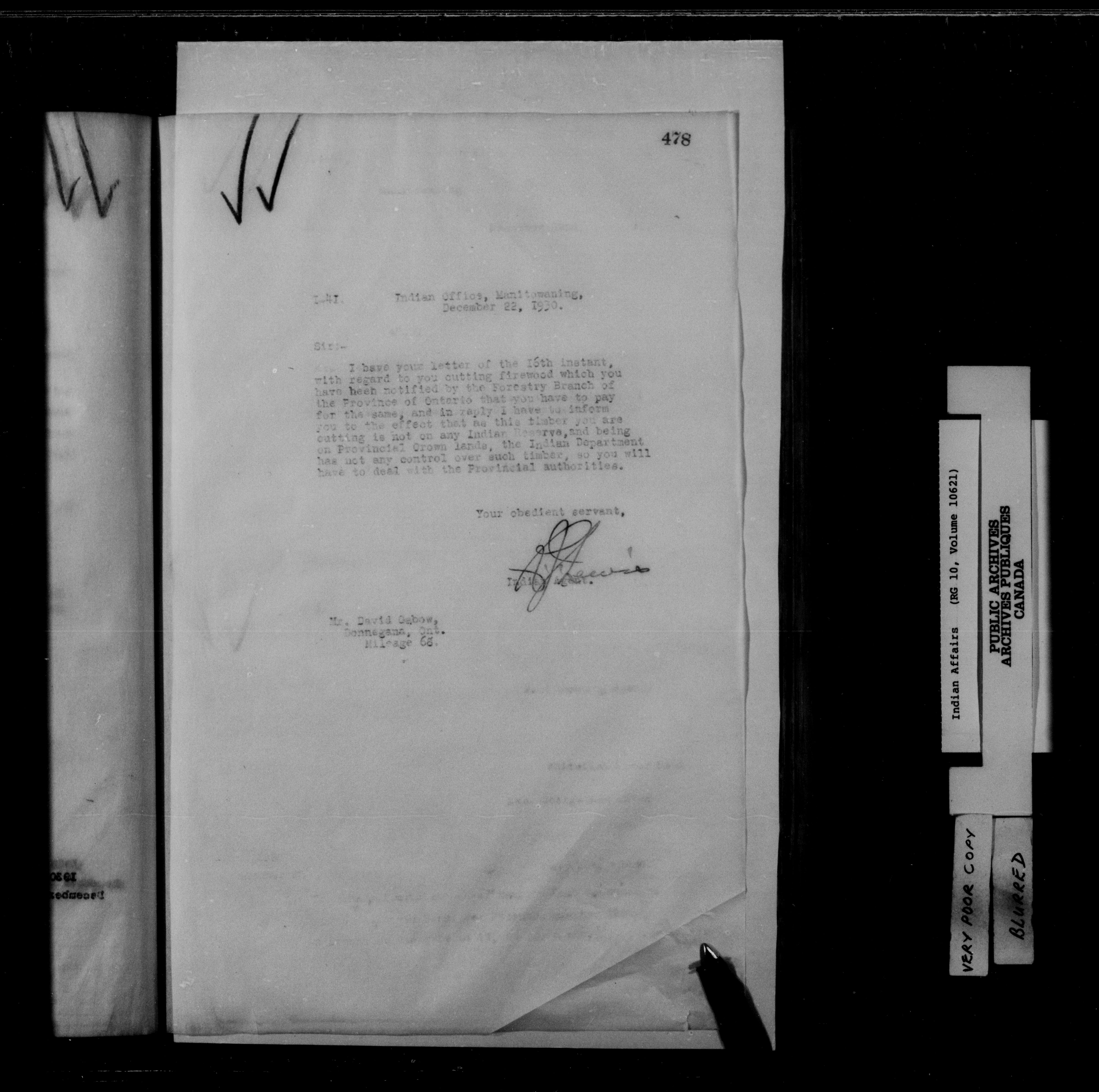 Department of Indian Affairs : Manitoulin Island District Office, letterbooks : C-15279