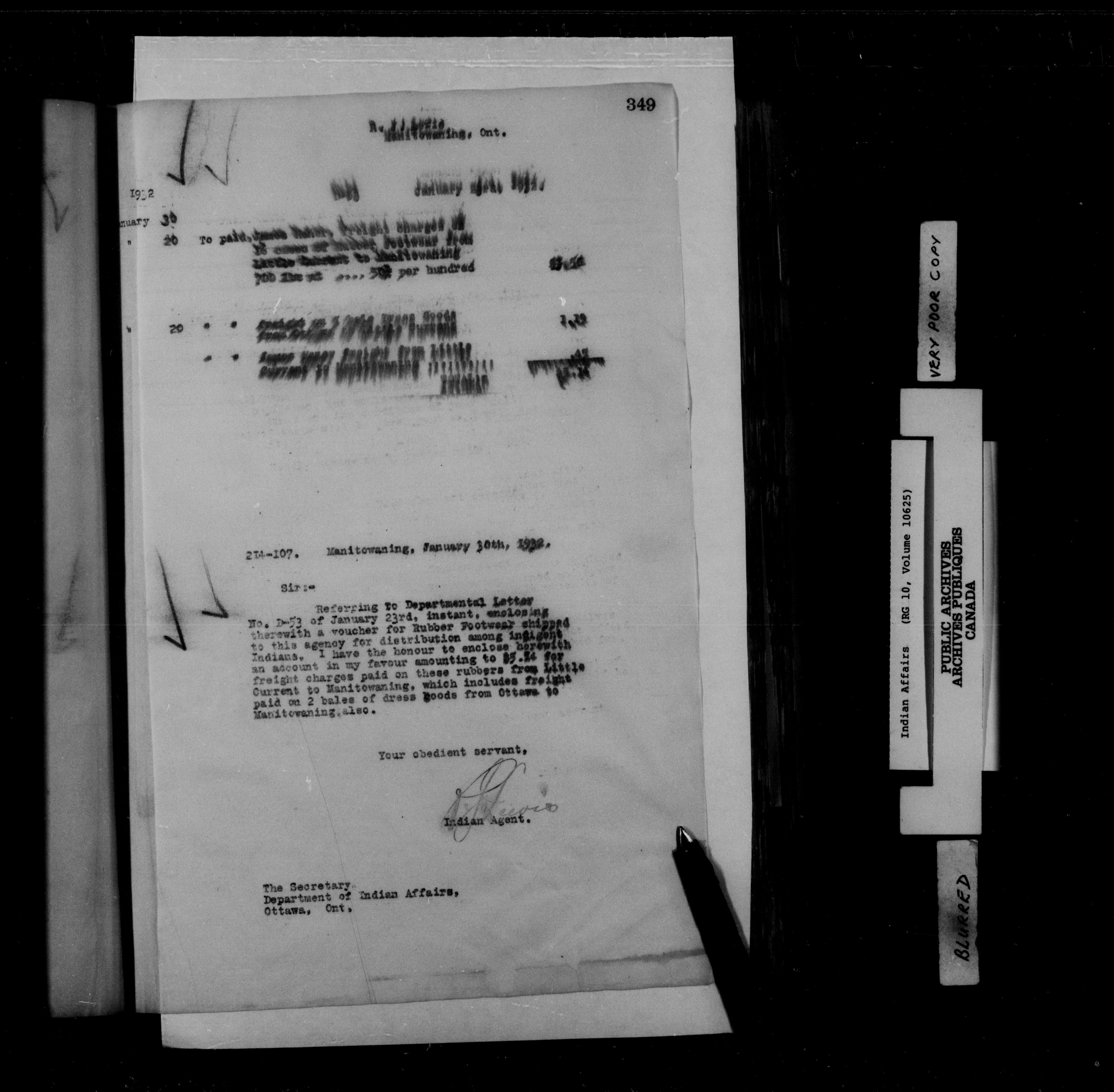 Department of Indian Affairs : Manitoulin Island District Office, letterbooks : C-15280