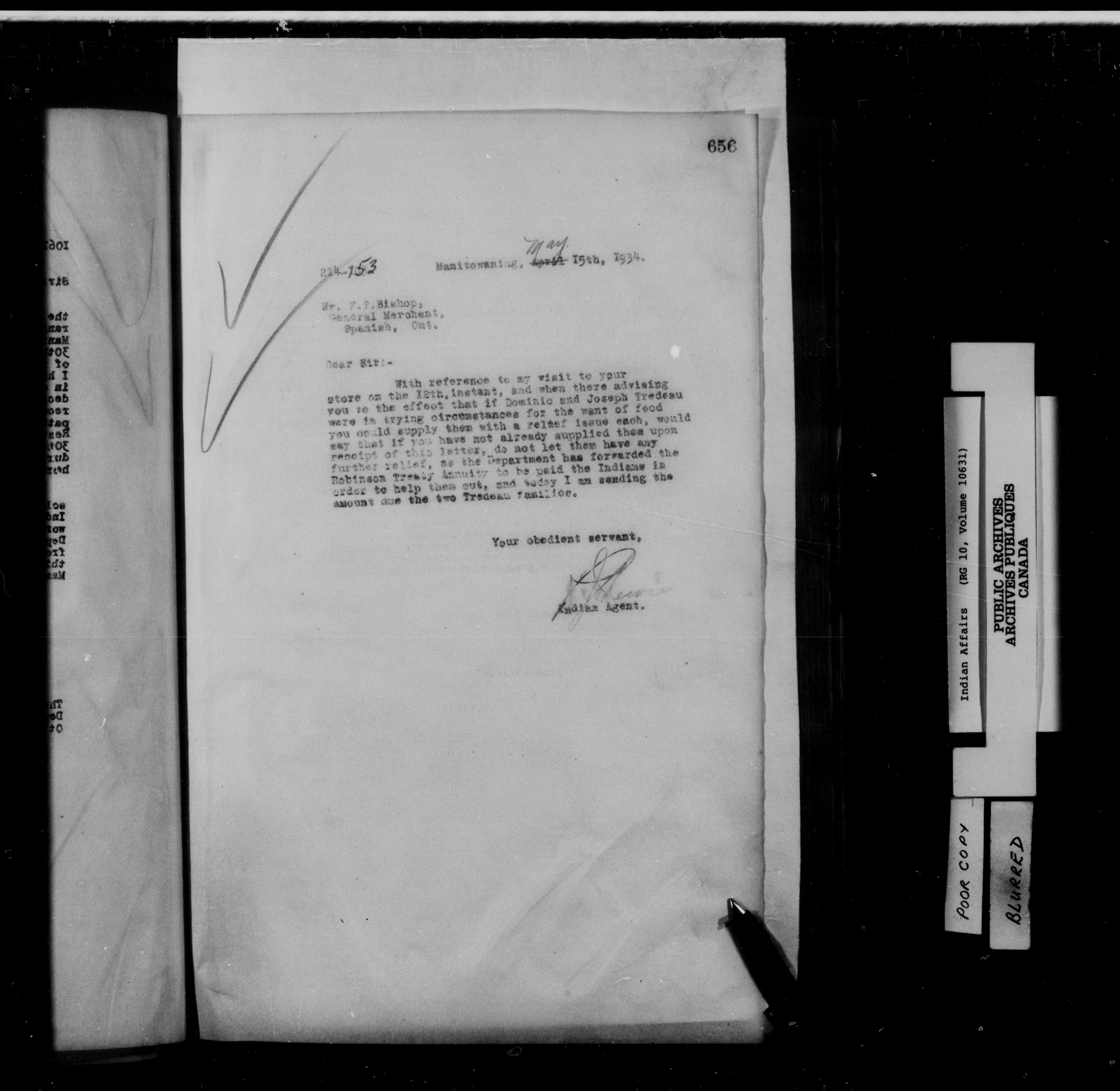 Department of Indian Affairs. Manitoulin Island District Office : letterbooks - 15282