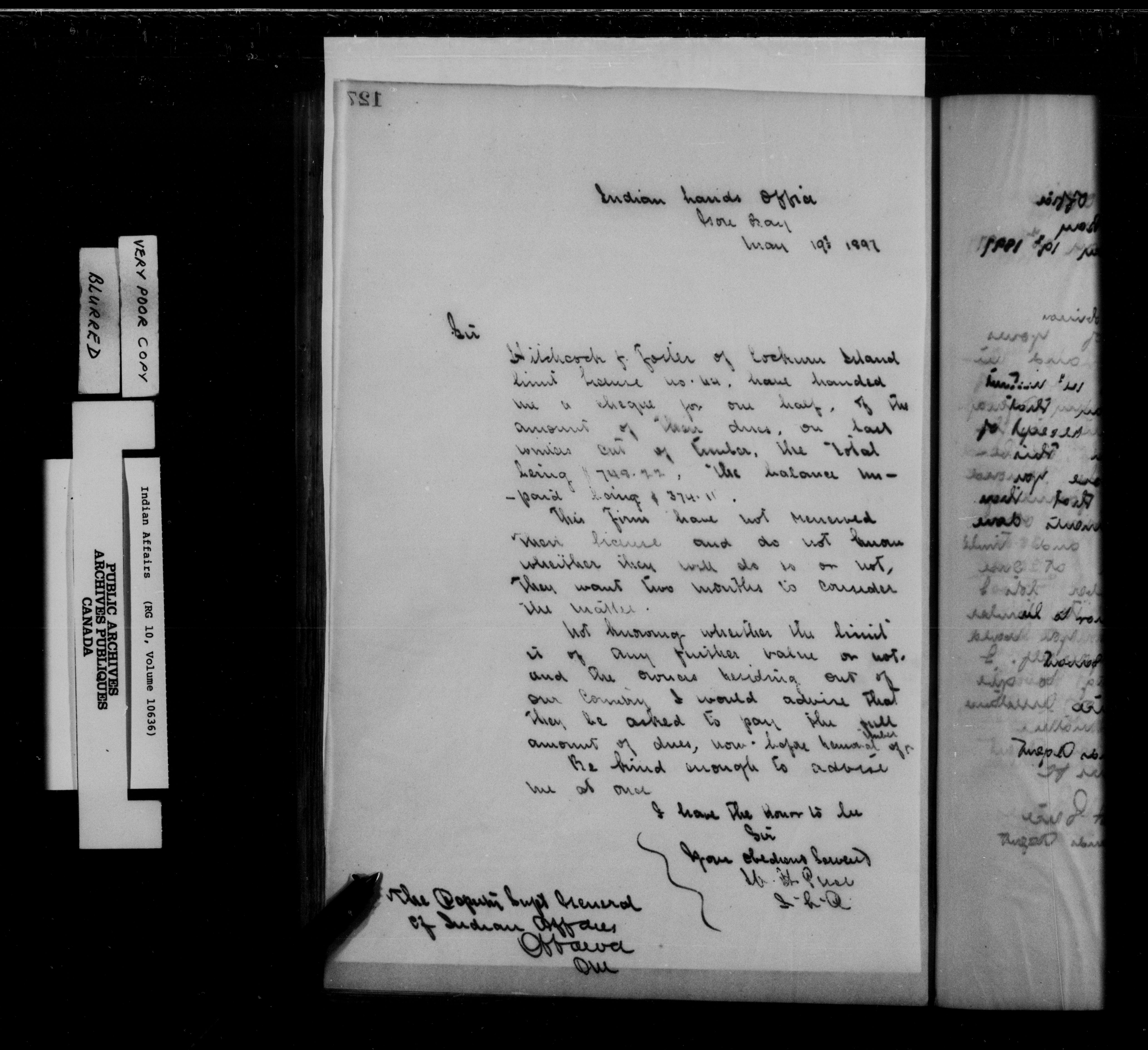 Department of Indian Affairs : Manitoulin Island District Office, letterbooks : C-15284