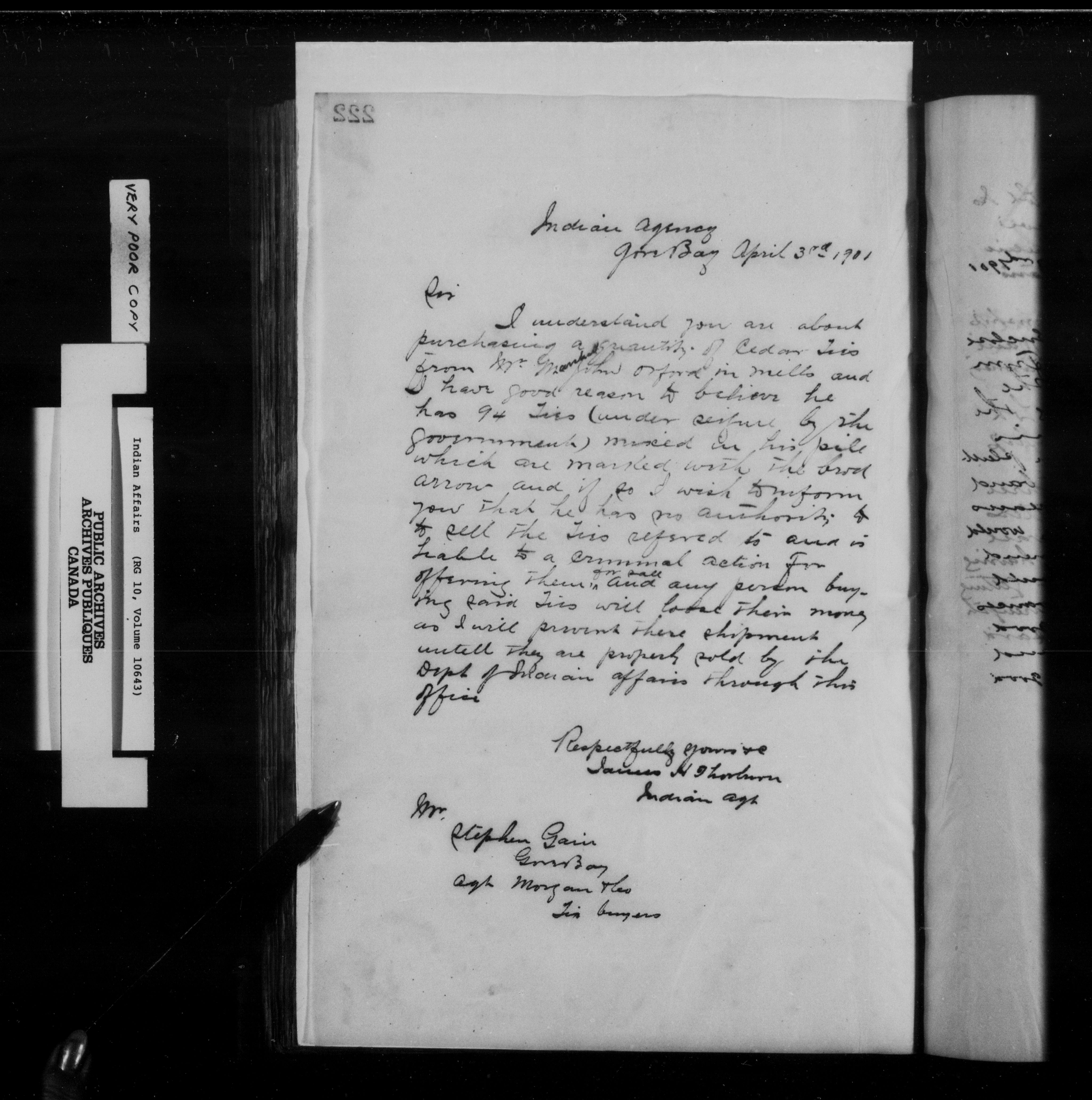 Department of Indian Affairs : Manitoulin Island District Office, letterbooks : C-15286