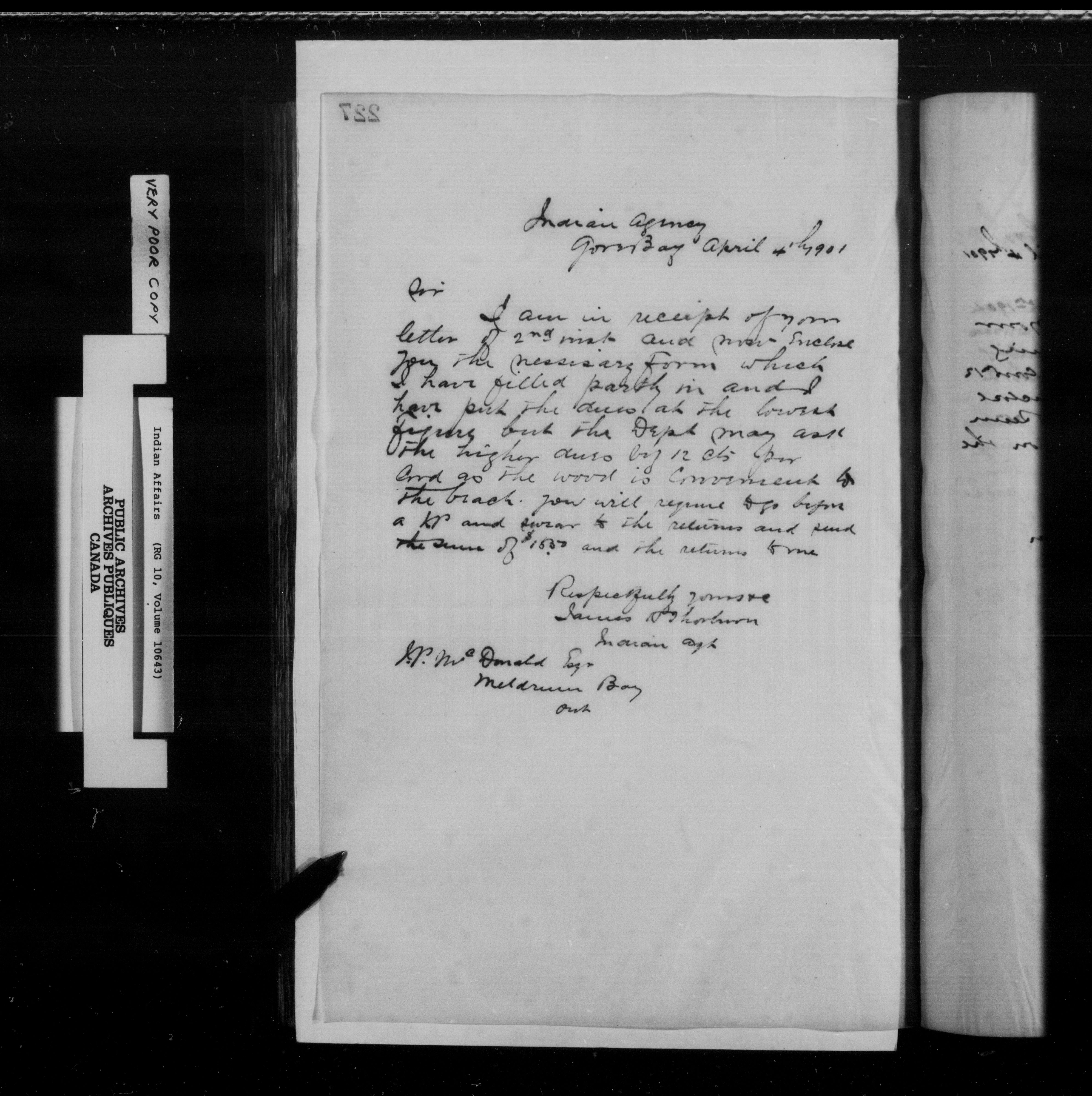 Department of Indian Affairs : Manitoulin Island District Office, letterbooks : C-15286
