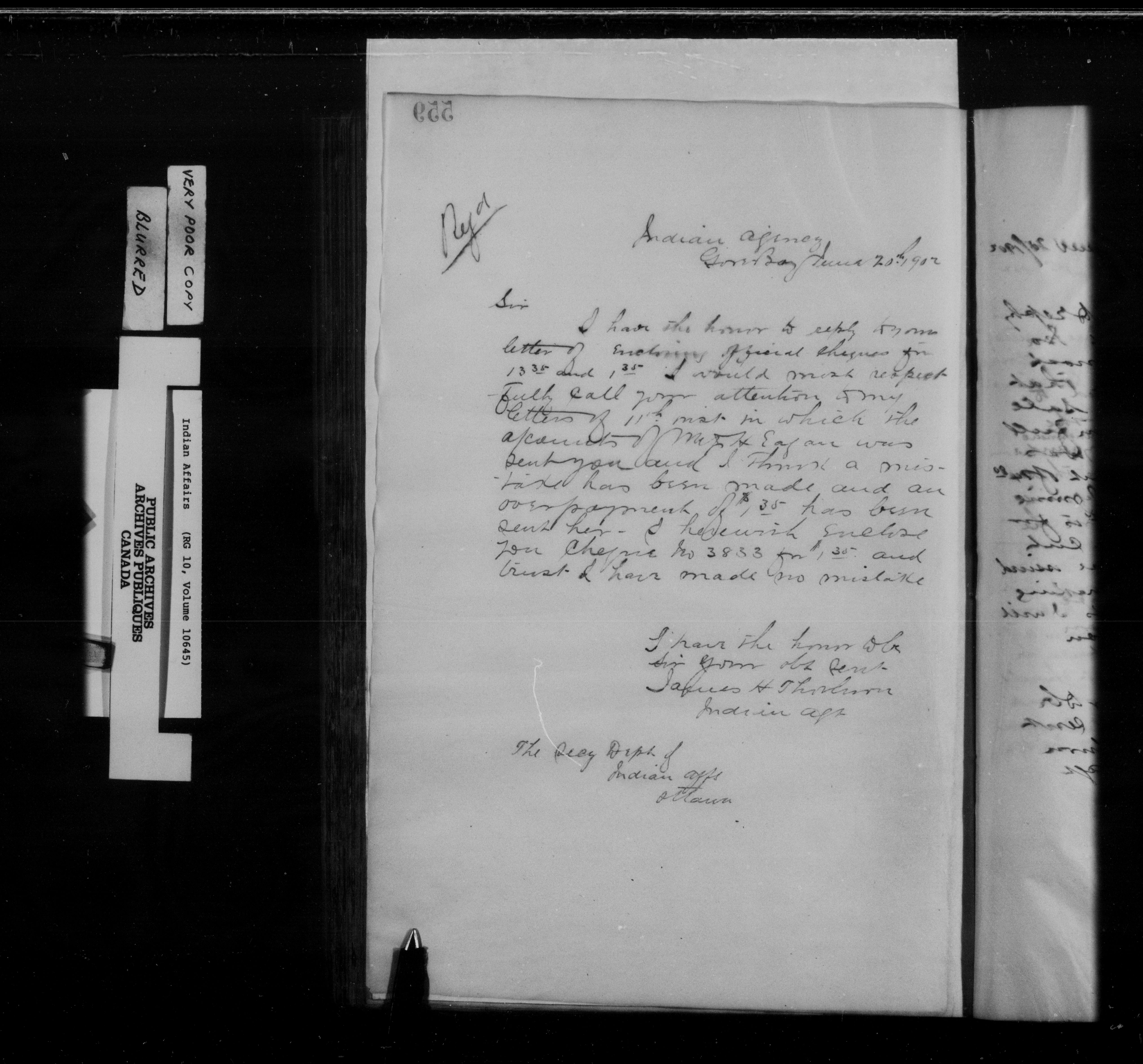 Department of Indian Affairs : Manitoulin Island District Office, letterbooks : C-15288
