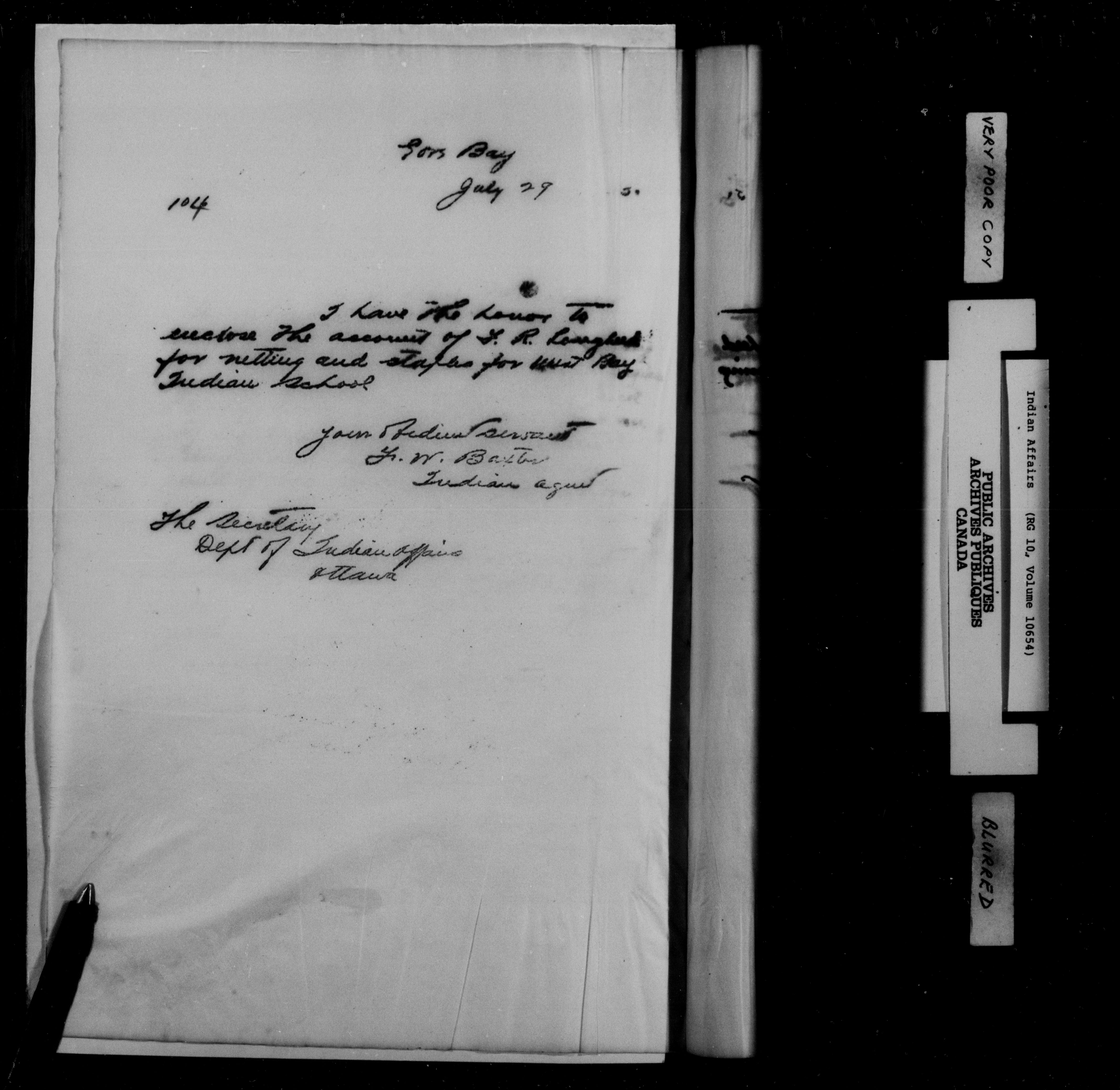 Department of Indian Affairs : Manitoulin Island District Office, letterbooks : C-15291