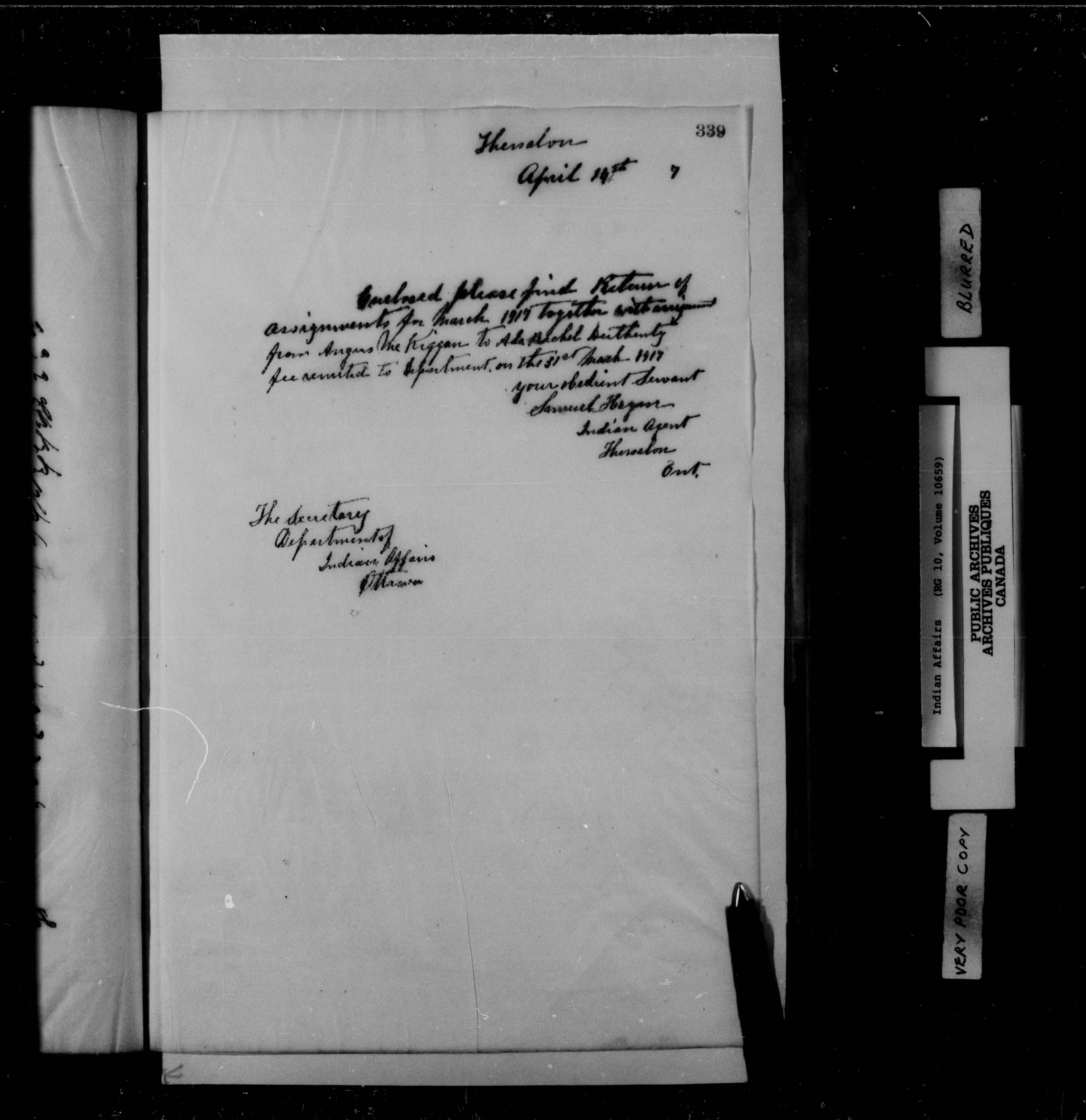 Department of Indian Affairs : Thessalon Agency : C-15293