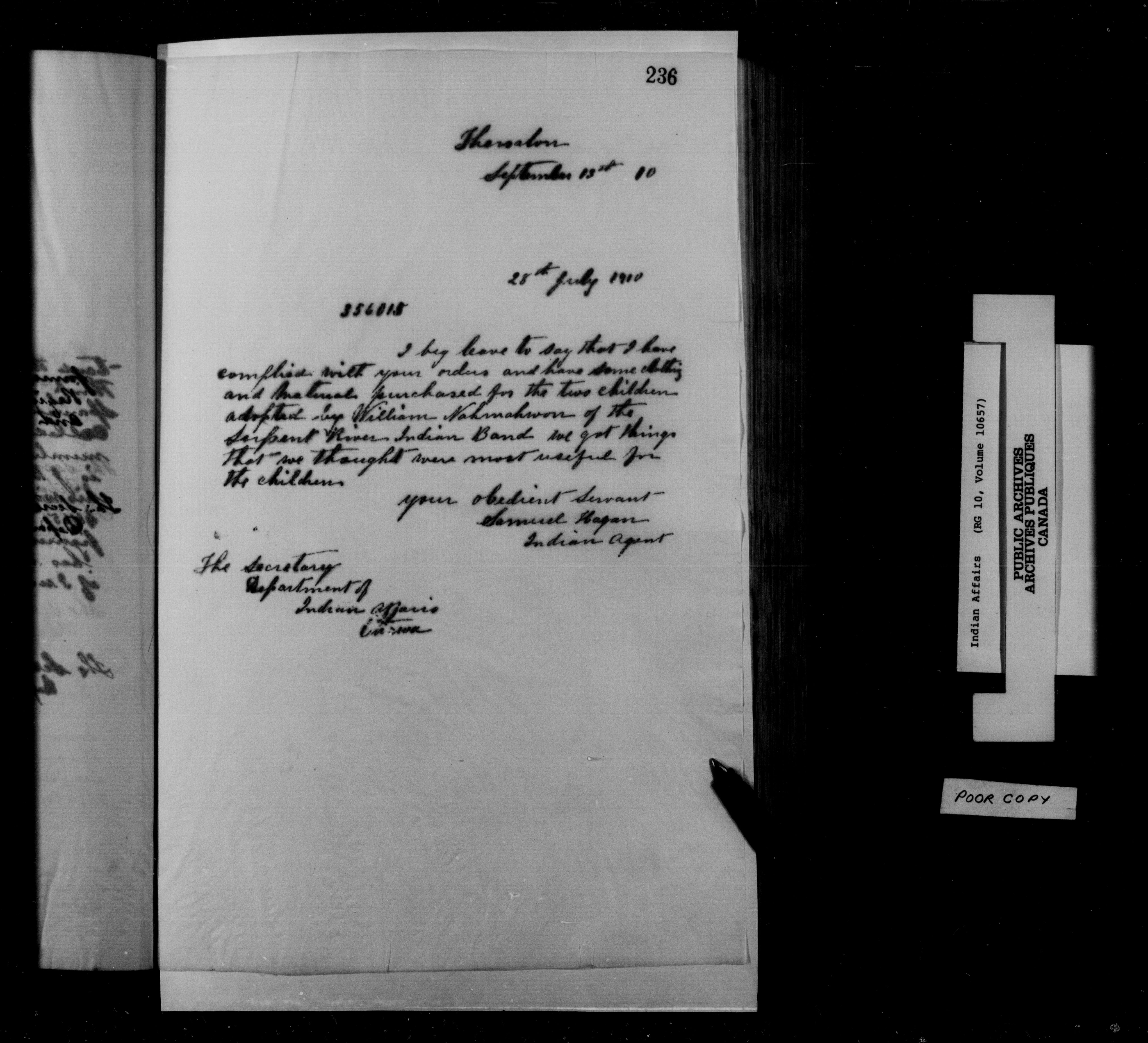 Department of Indian Affairs : Thessalon Agency : C-15293