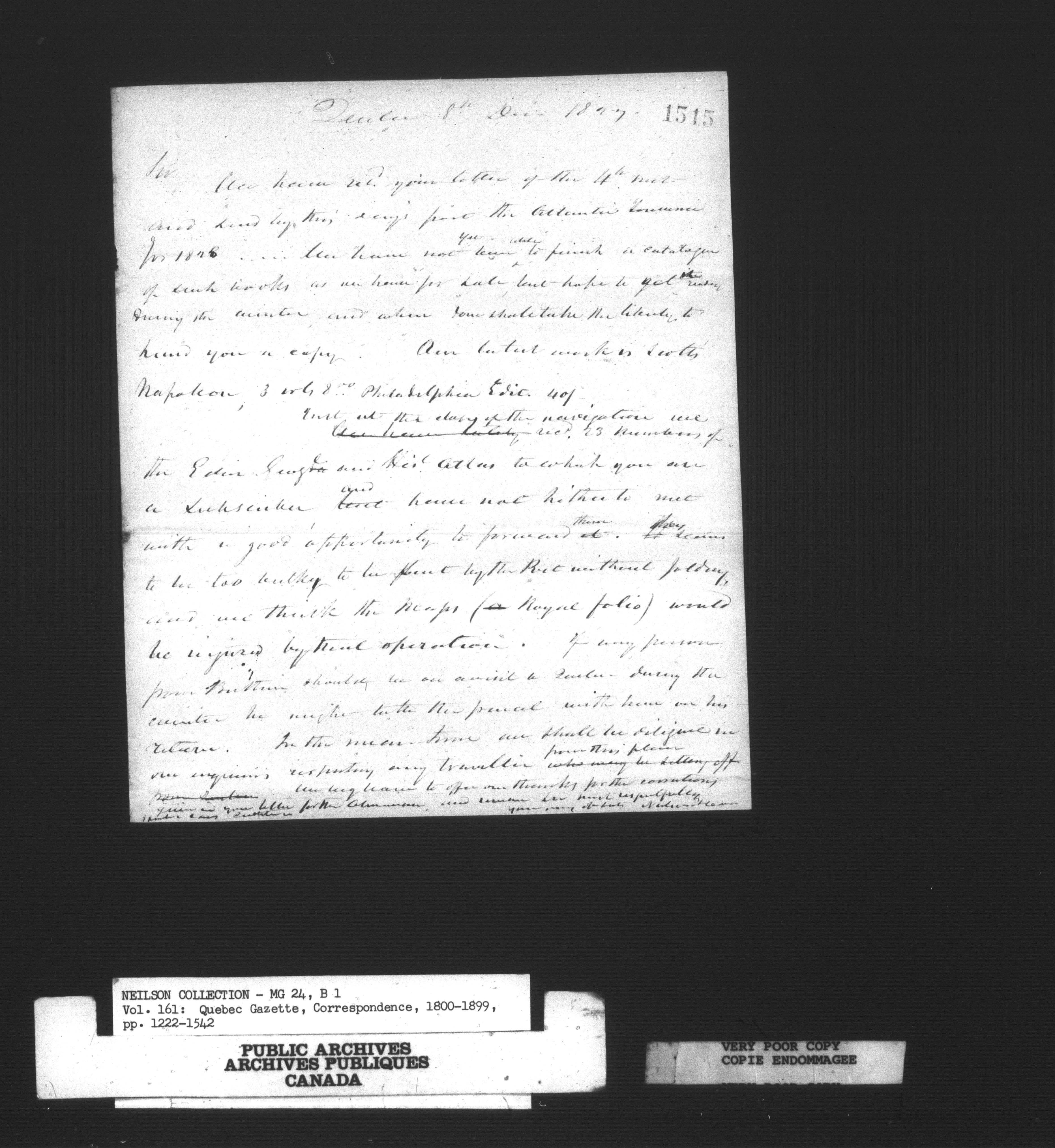 Neilson Collection - Quebec Gazette correspondence - 15611