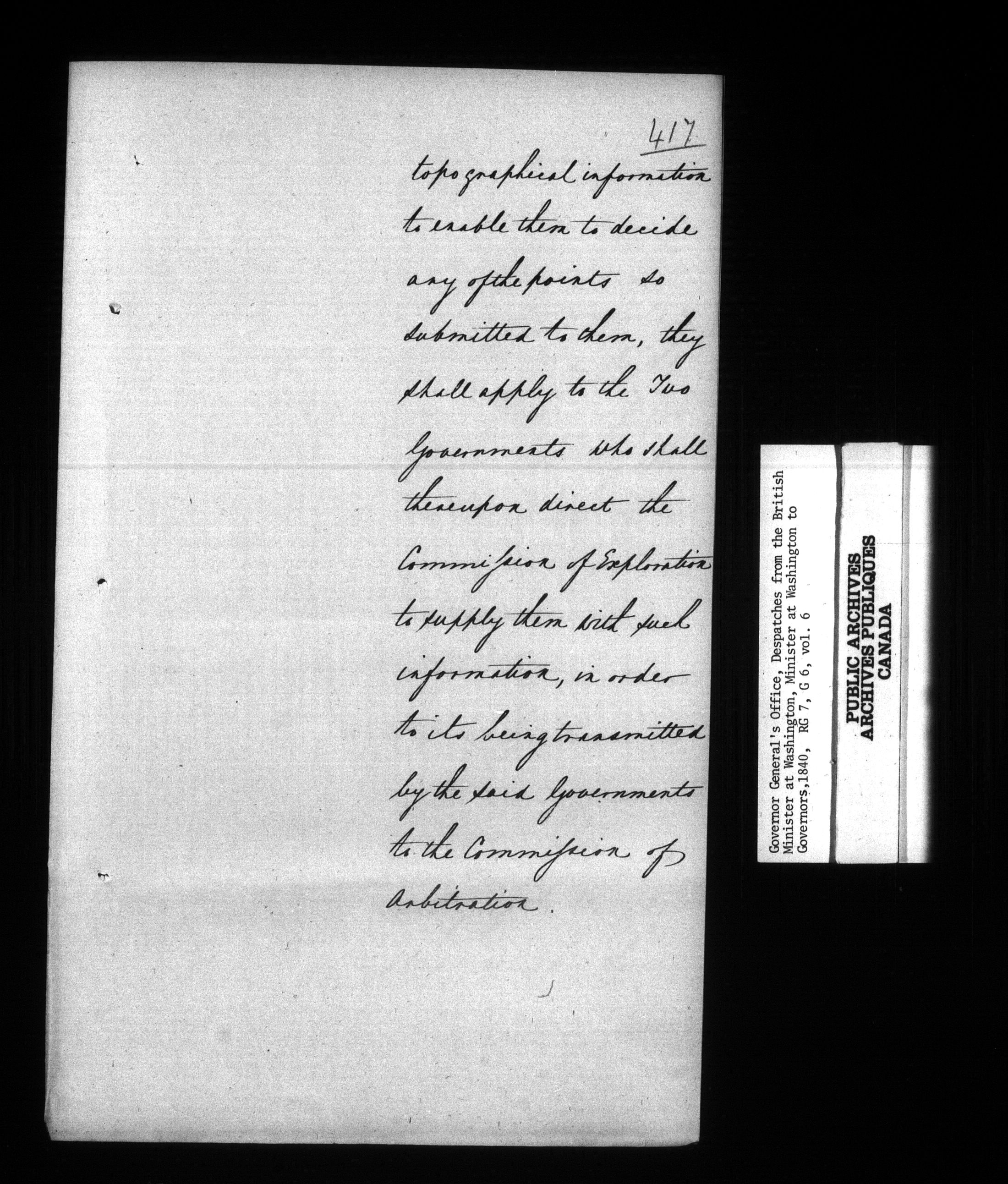 Letterbooks of despatches from the Colonial Office entry book, Colonial Secretary to Governor ; Despatches from the British Minister at Washington, 1839 - C-15626