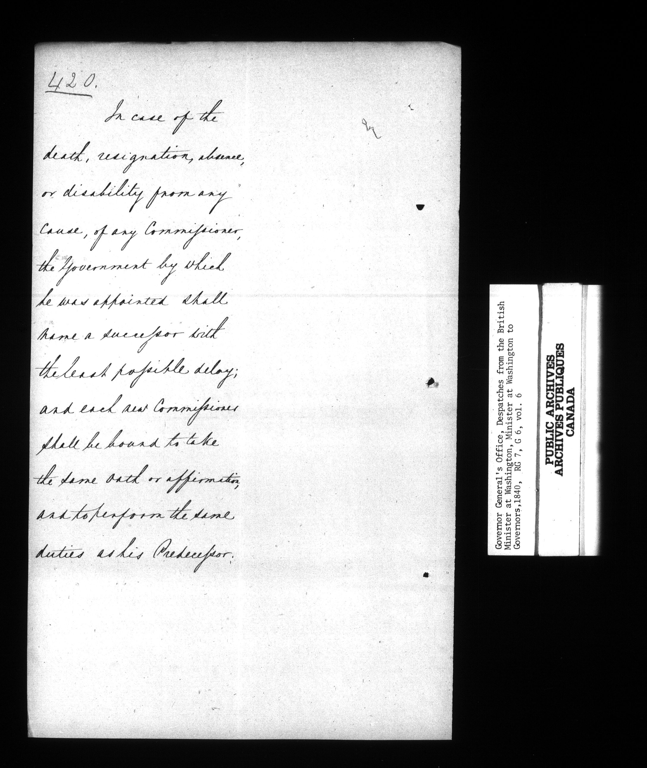 Letterbooks of despatches from the Colonial Office entry book, Colonial Secretary to Governor ; Despatches from the British Minister at Washington, 1839 - C-15626
