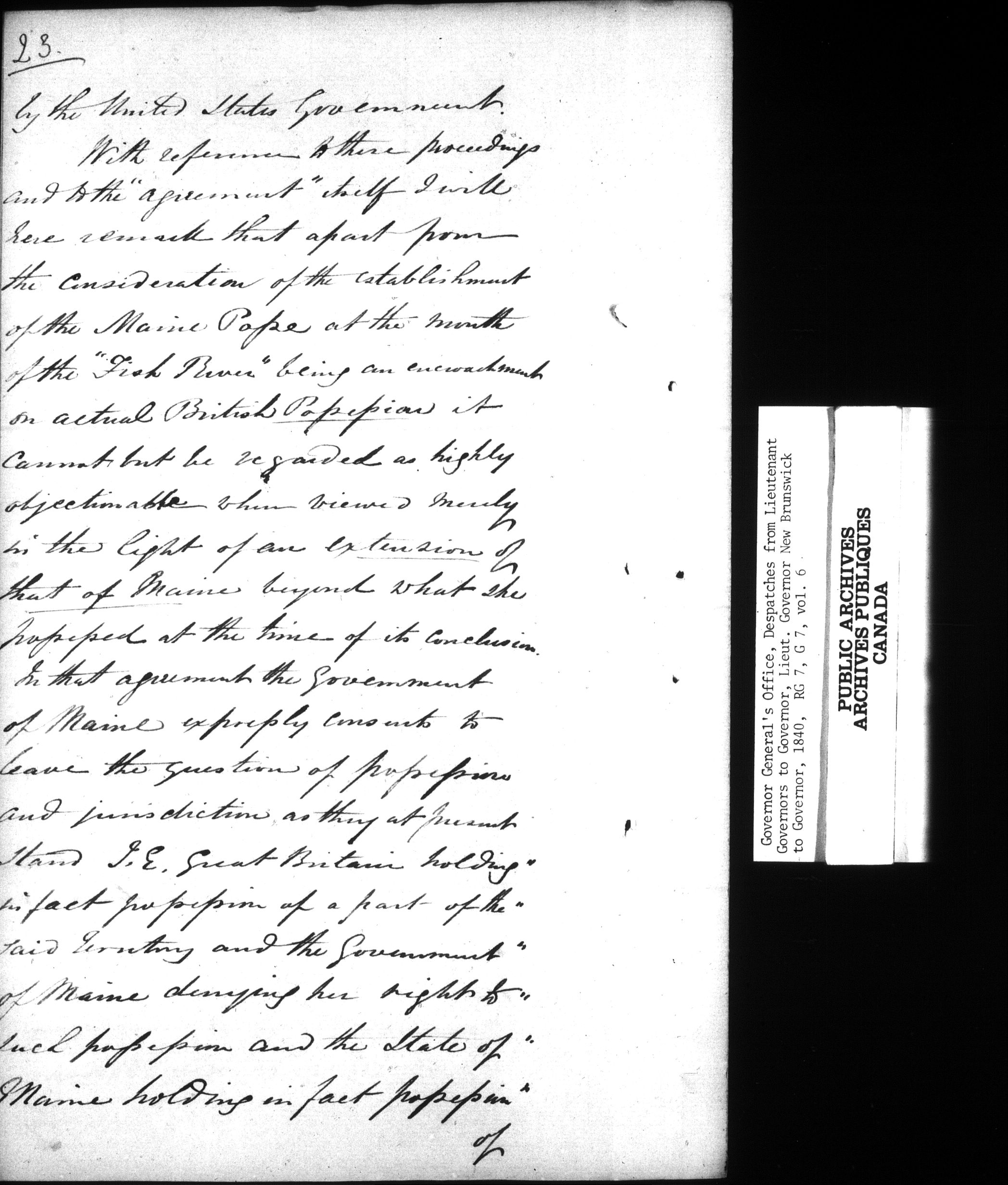 Correspondence with the British Minister at Washington [1866] ; Despatches from Lieutenant Governors to Governor or Lieutenant Governor Upper Canada, 1821-1841 ; Despatches from Lieutenant Governors to Governor or Lieutenant Governor New Brunswick, 1823-1840 - C-15629