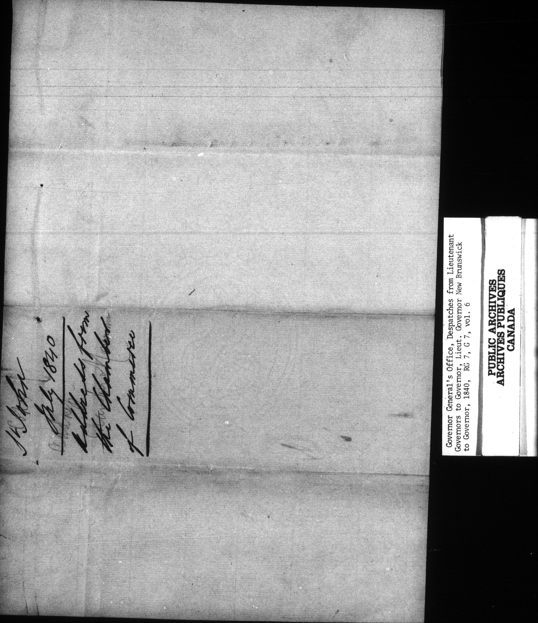 Despatches from the Lieutenant Governors of New Brunswick, 1840-1854 ; Despatches from the Lieutenant Governors of Nova Scotia, 1820-1827 and 1836-1877 - C-15630