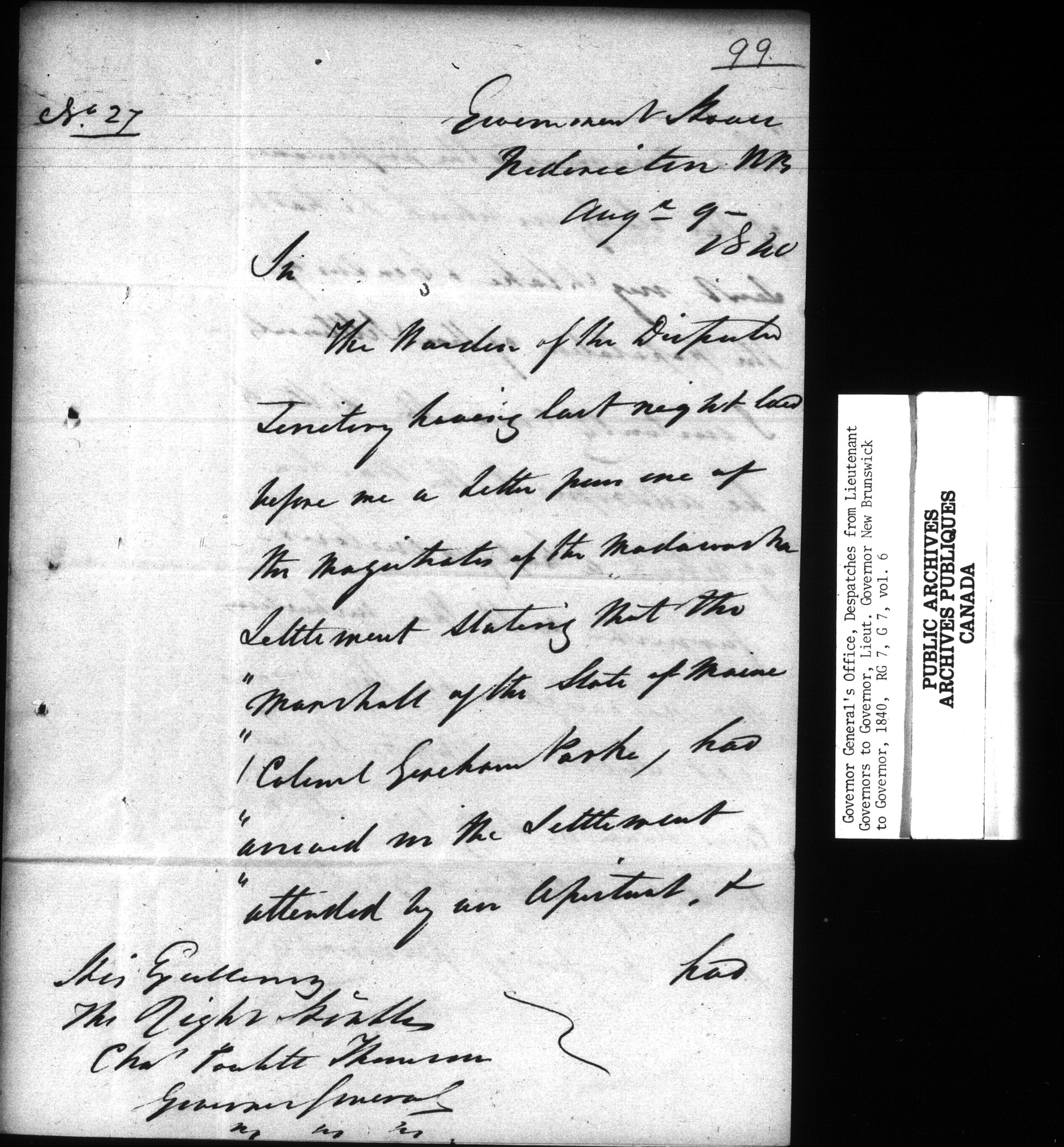 Despatches from the Lieutenant Governors of New Brunswick, 1840-1854 ; Despatches from the Lieutenant Governors of Nova Scotia, 1820-1827 and 1836-1877 - C-15630