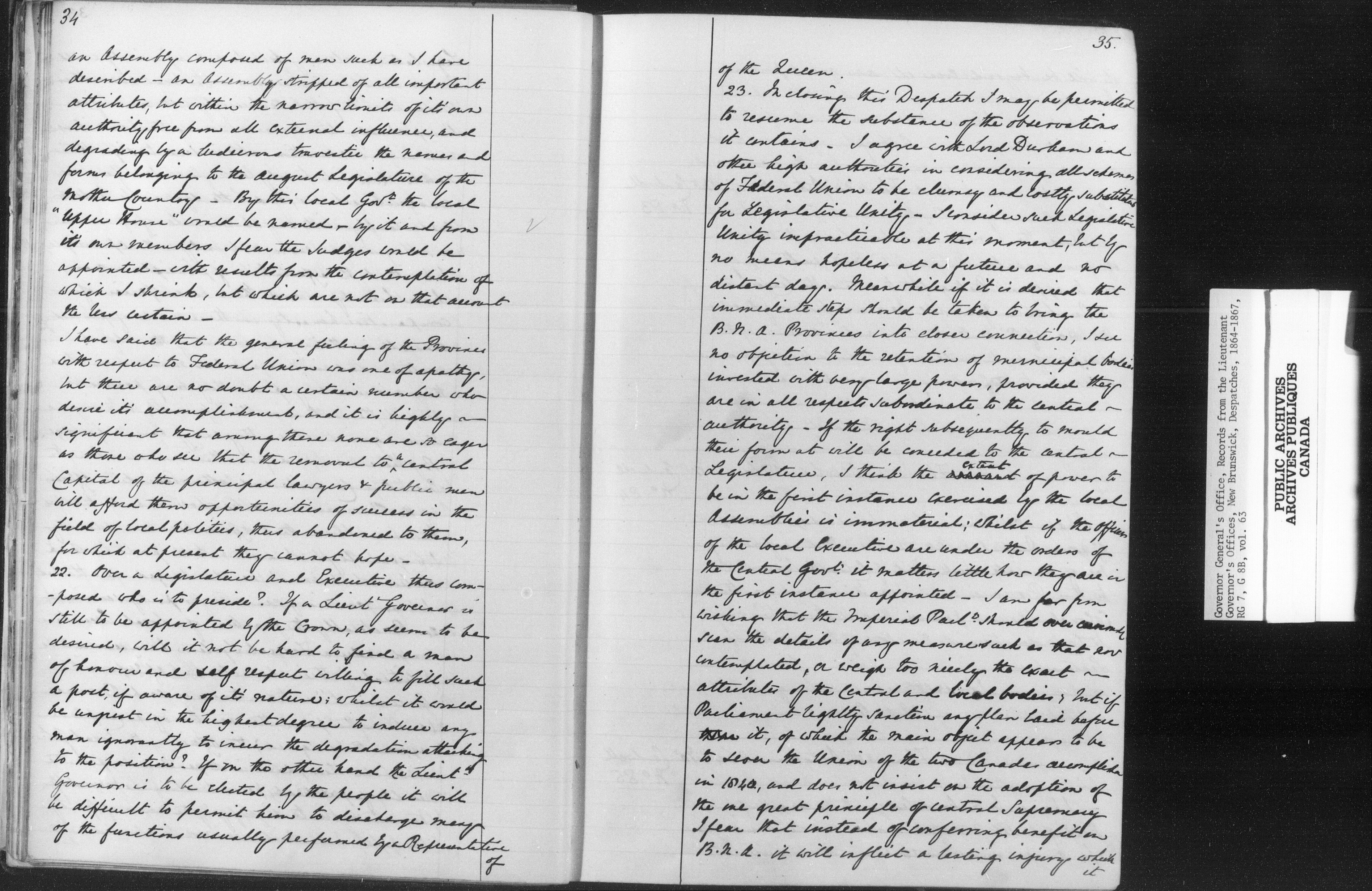 Despatches from Lieutenant Governors to Governor or Lieutenant Governor Nova Scotia, 1820-1827 and 1836-1877 ; Registers of correspondence ; Schedule of despatches exchanged ; Miscellaneous memoranda and despatches ; Schedule of despatches received - C-15631