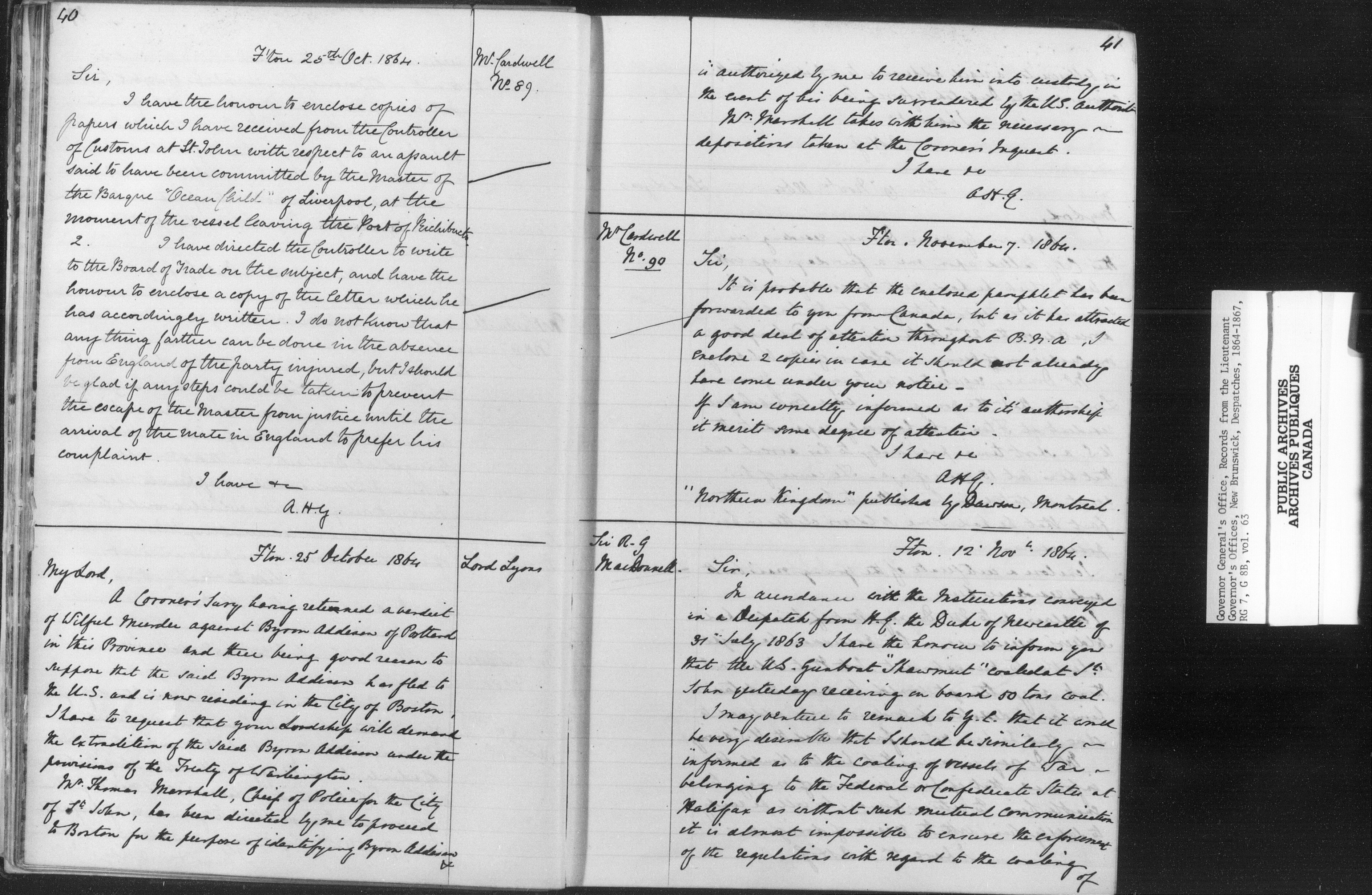 Despatches from Lieutenant Governors to Governor or Lieutenant Governor Nova Scotia, 1820-1827 and 1836-1877 ; Registers of correspondence ; Schedule of despatches exchanged ; Miscellaneous memoranda and despatches ; Schedule of despatches received - C-15631
