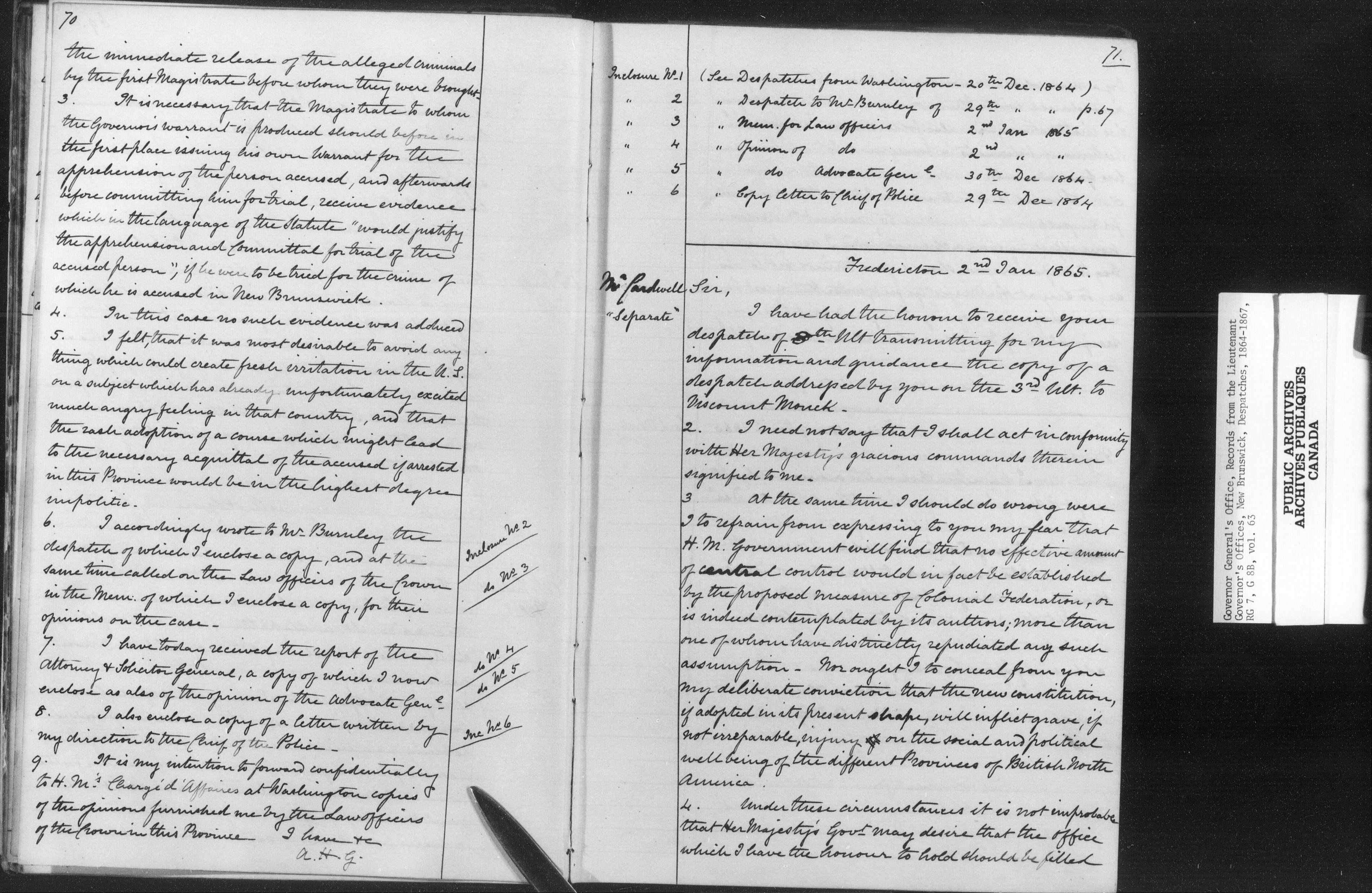 Despatches from Lieutenant Governors to Governor or Lieutenant Governor Nova Scotia, 1820-1827 and 1836-1877 ; Registers of correspondence ; Schedule of despatches exchanged ; Miscellaneous memoranda and despatches ; Schedule of despatches received - C-15631