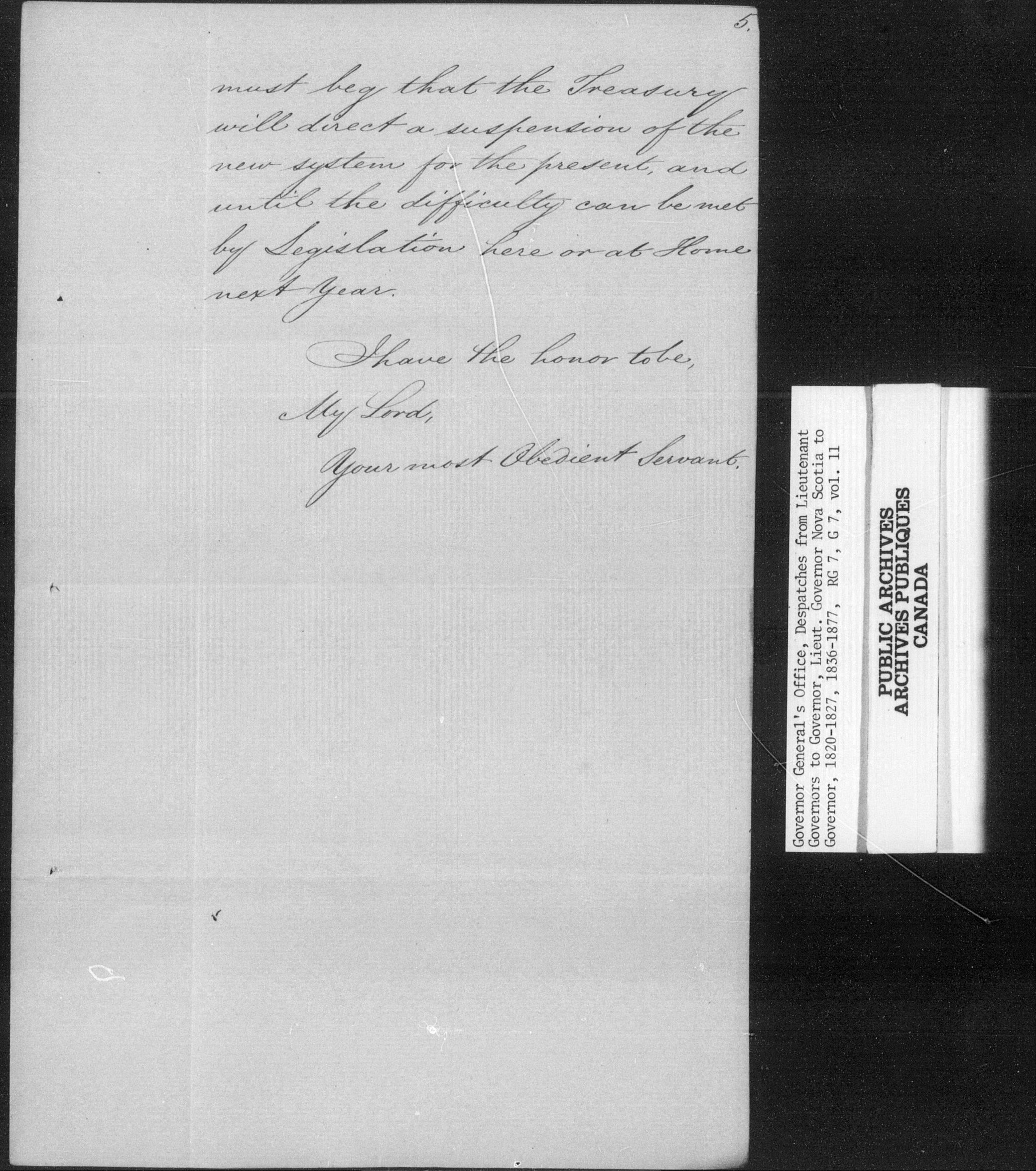 Despatches from Lieutenant Governors to Governor or Lieutenant Governor Nova Scotia, 1820-1827 and 1836-1877 ; Registers of correspondence ; Schedule of despatches exchanged ; Miscellaneous memoranda and despatches ; Schedule of despatches received - C-15631