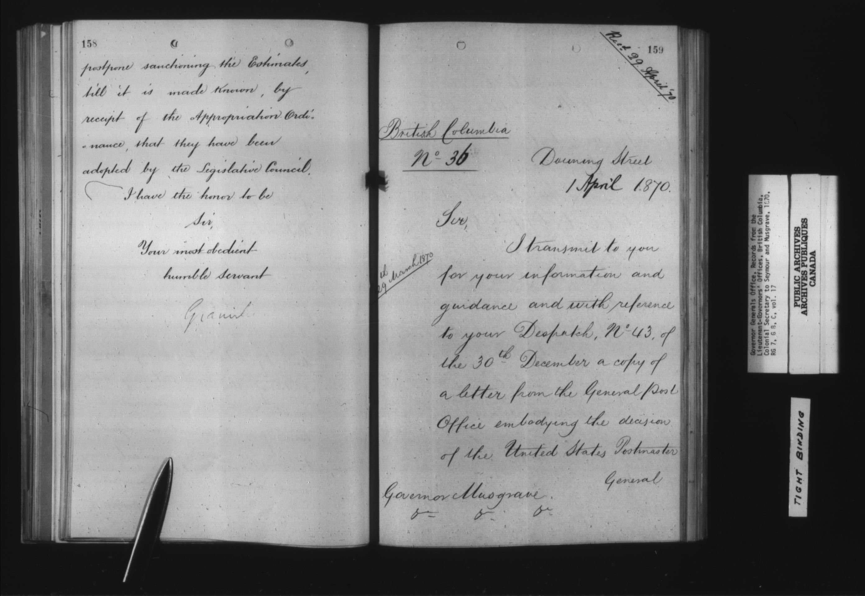 British Columbia despatches sent and received to the Colonial Office - 15636