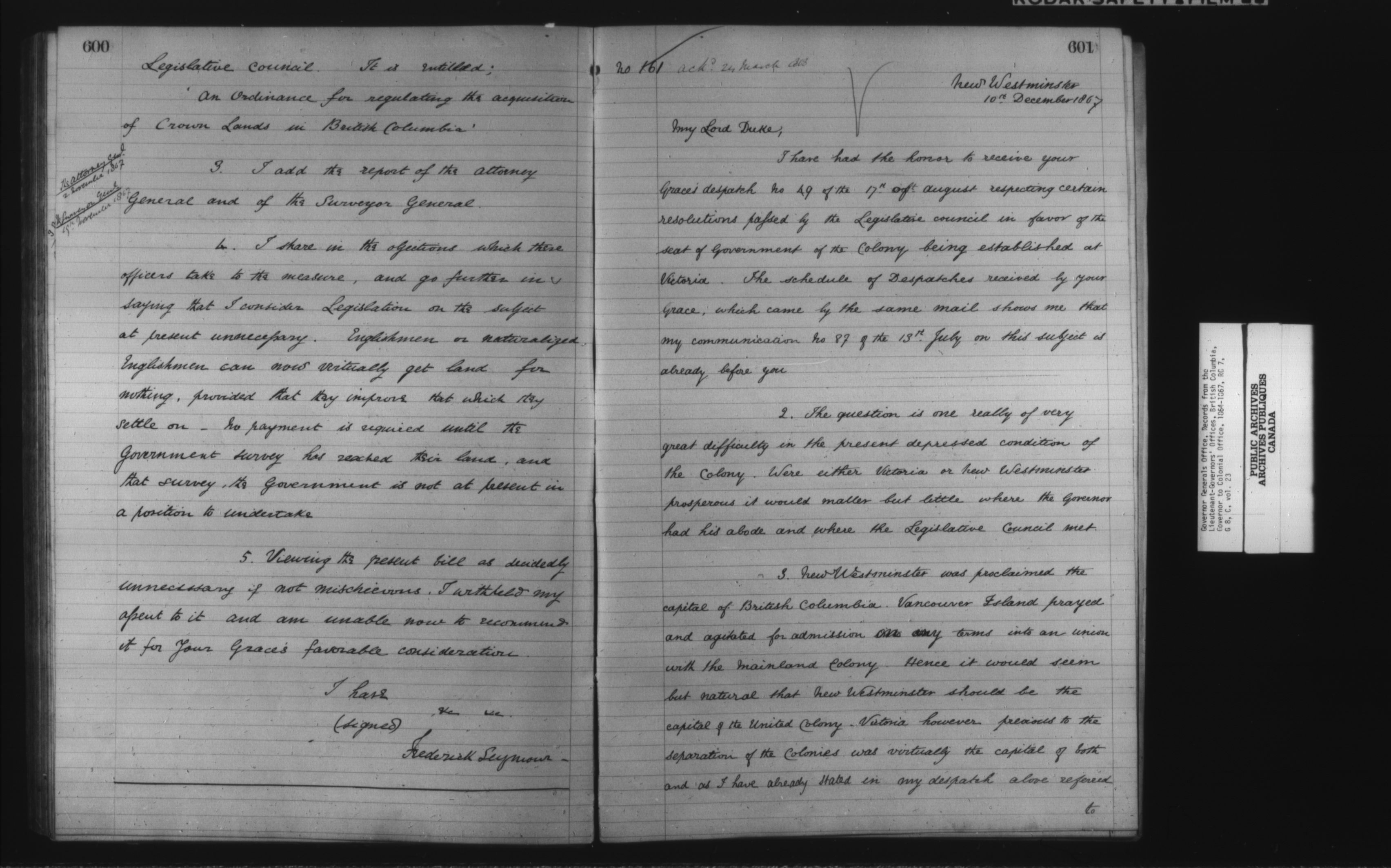 Despatches sent from British Columbia to Governor of the Colonial Office - 15637