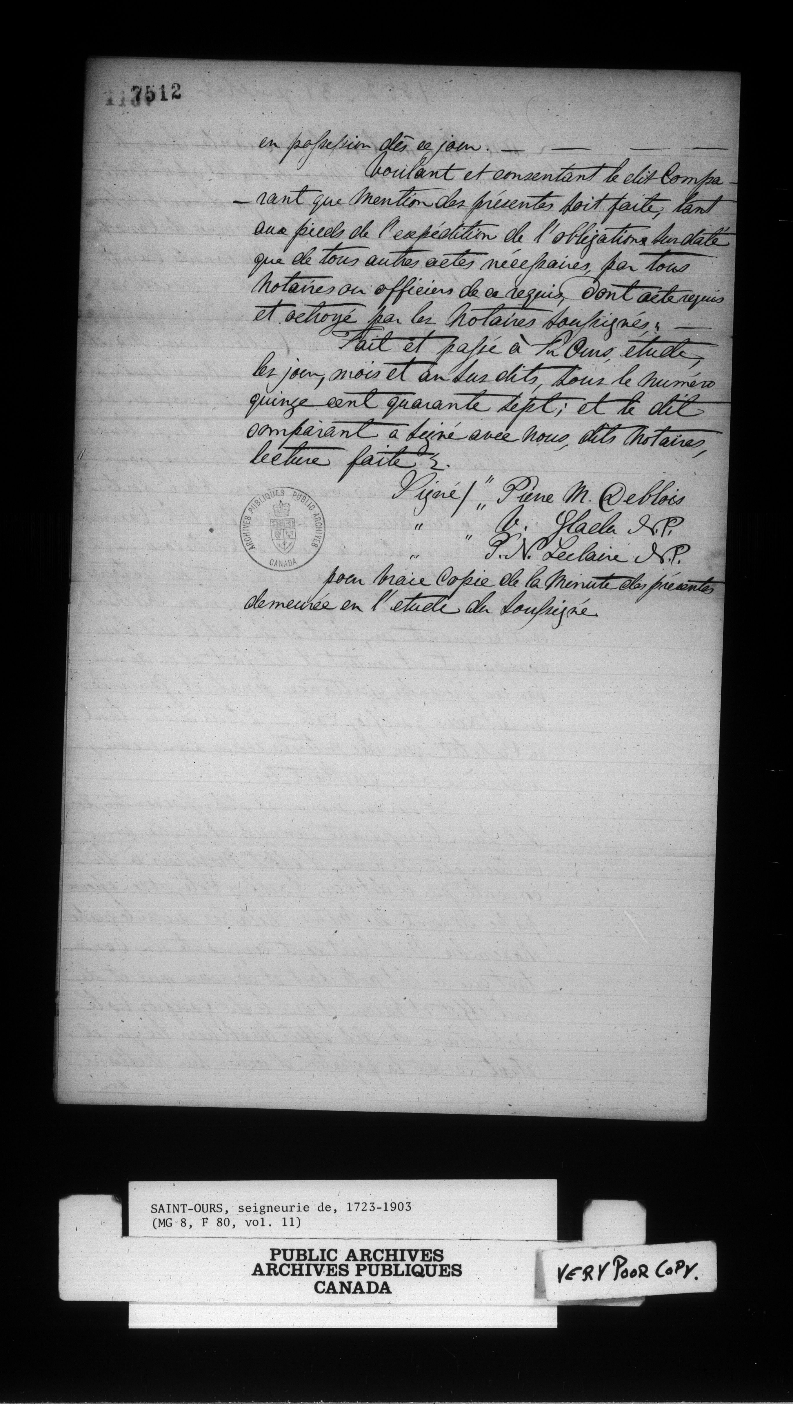 Fonds de la Seigneurie de Saint-Ours : C-15649