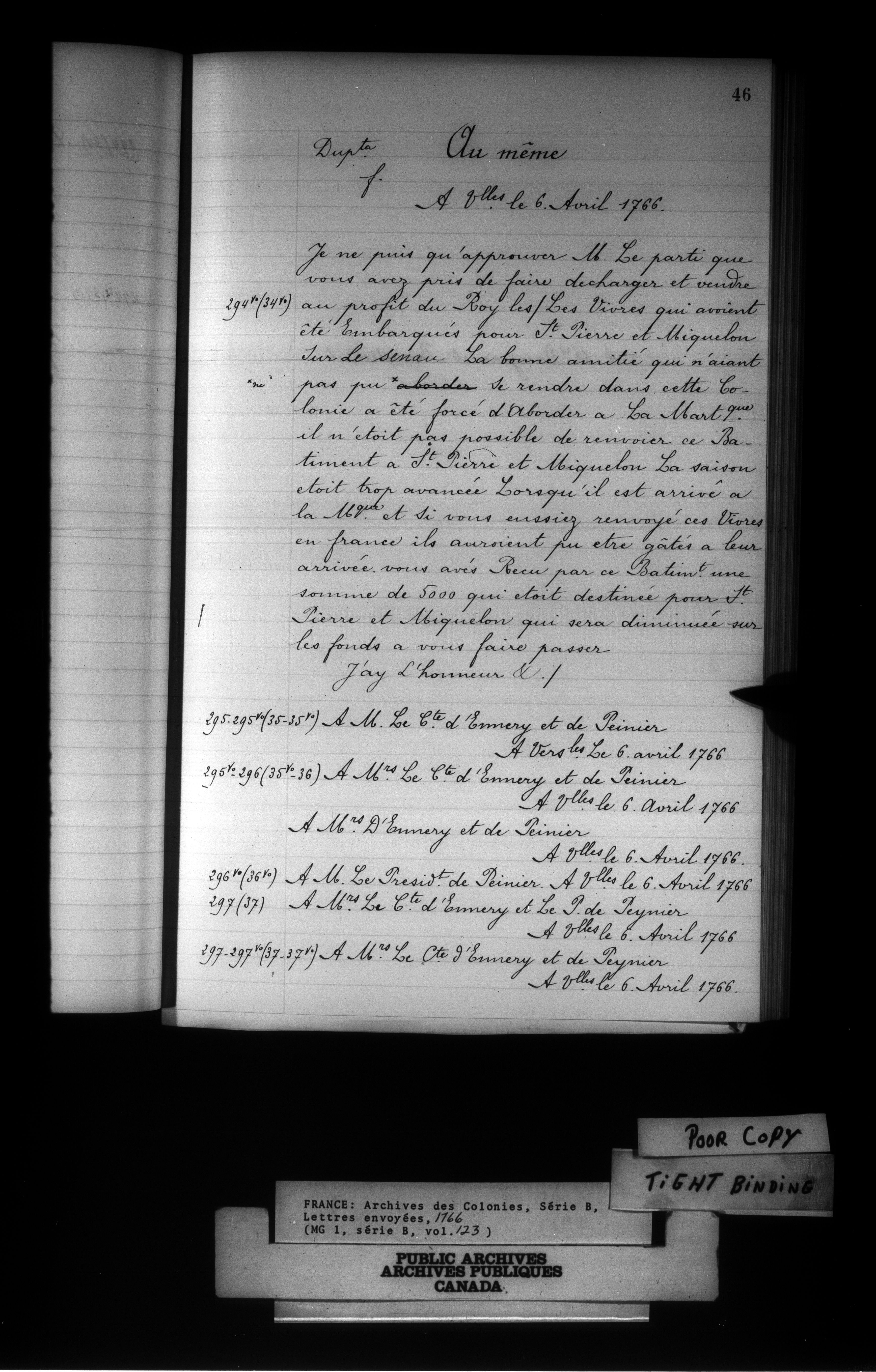 France: Archives des Colonies, Séries B, Lettres envoyées, 1663-1789 - 15666