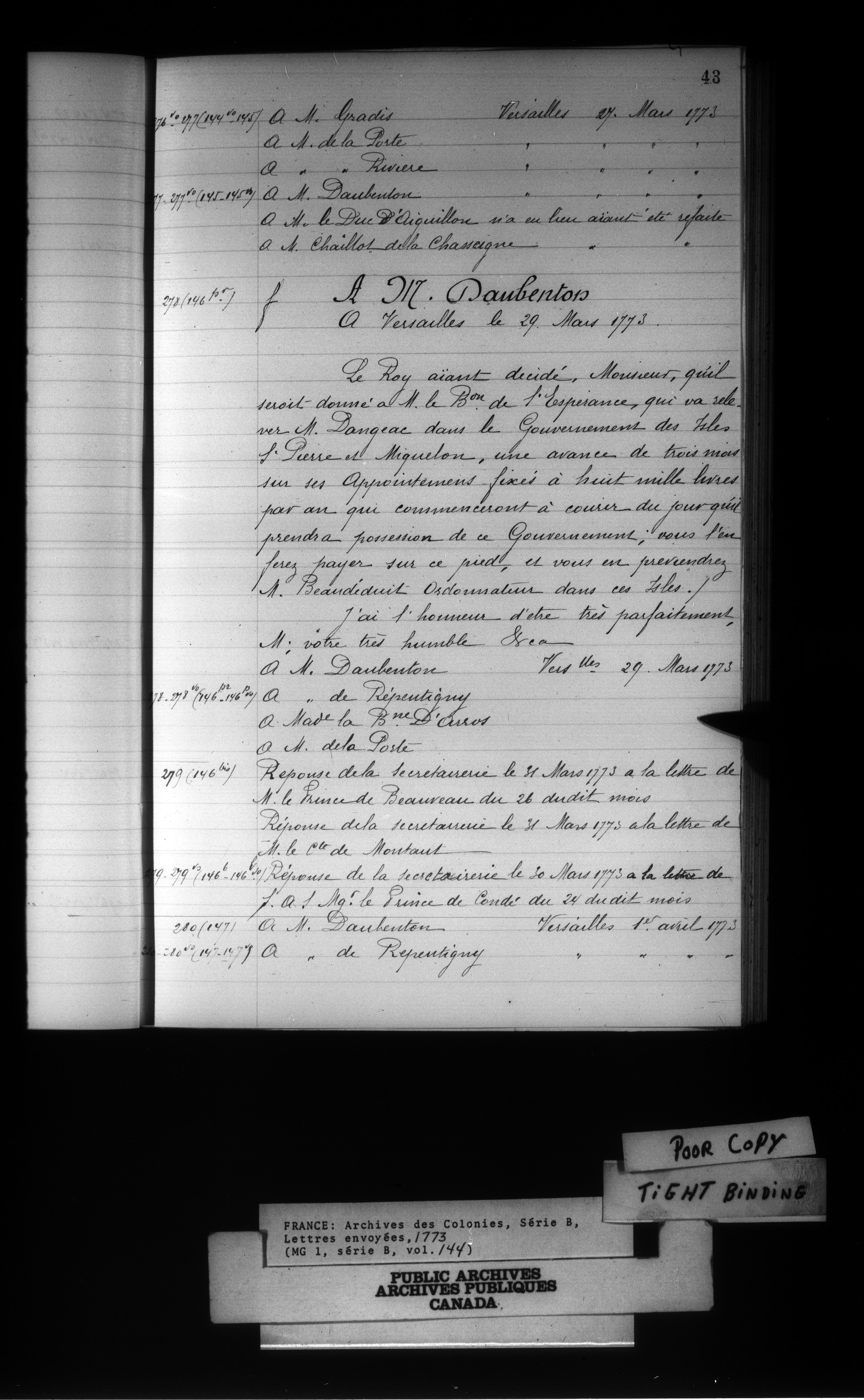 France: Archives des Colonies, Séries B, Lettres envoyées, 1663-1789 - 15668