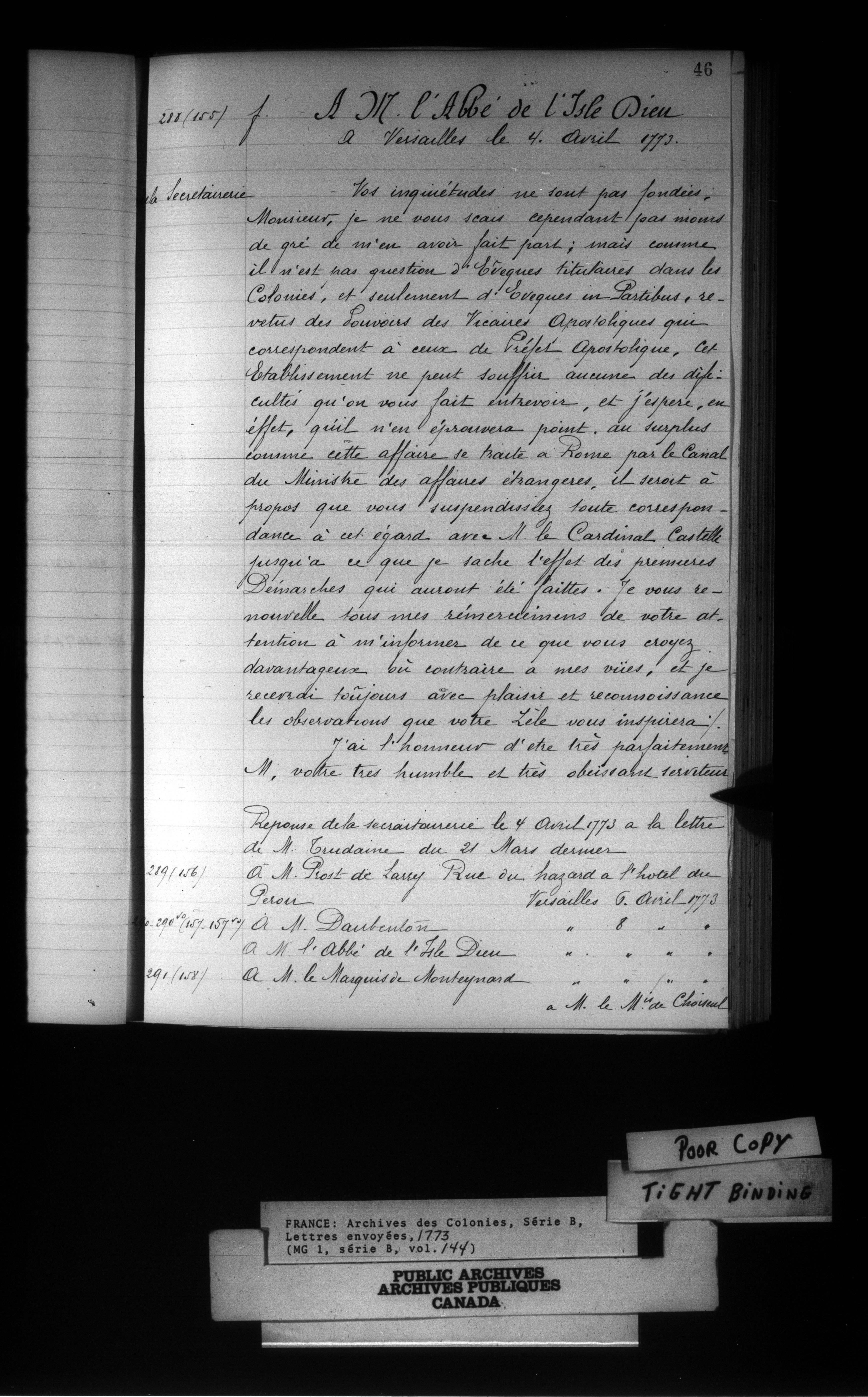 France: Archives des Colonies, Séries B, Lettres envoyées, 1663-1789 - 15668
