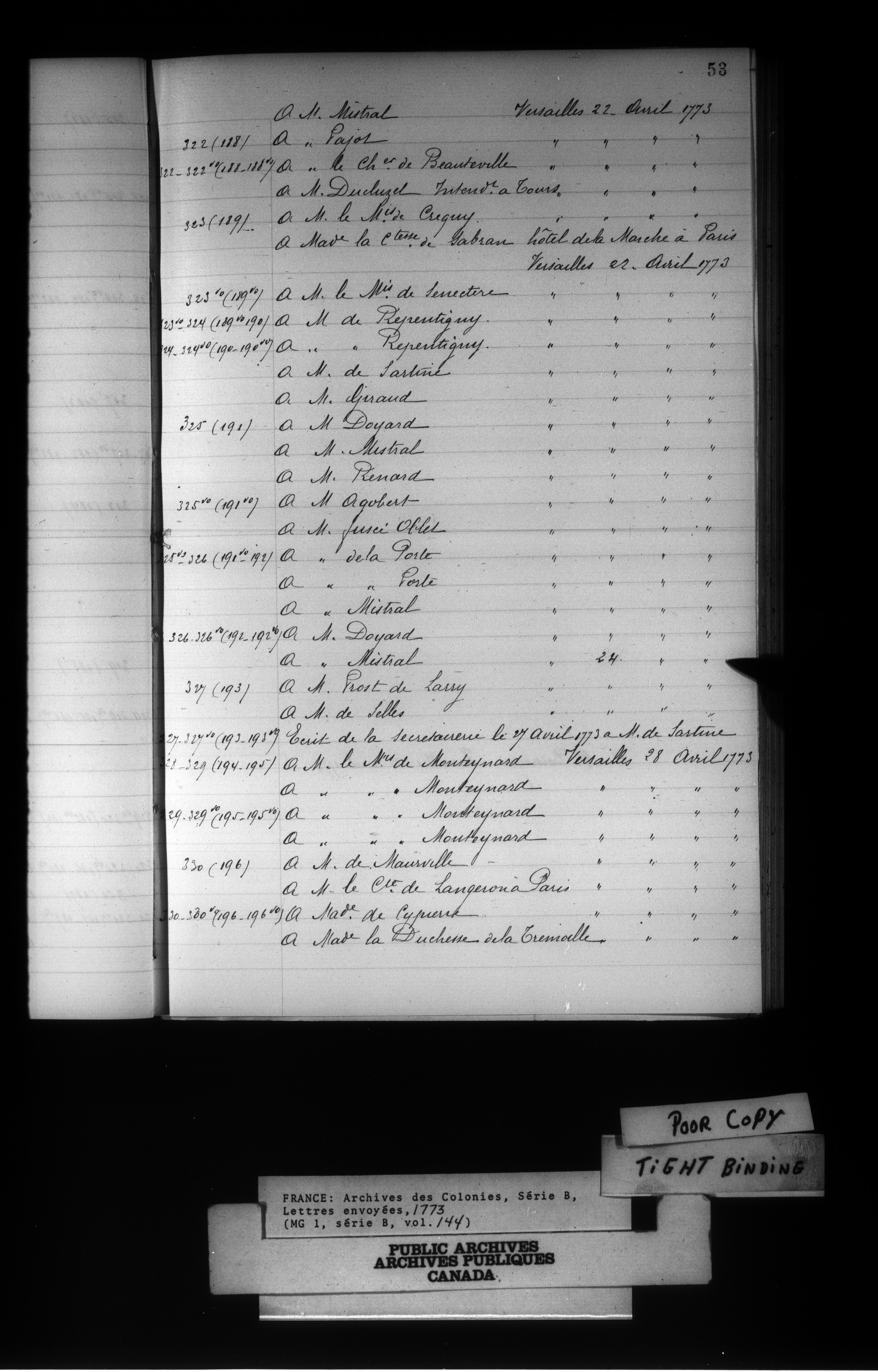 France: Archives des Colonies, Séries B, Lettres envoyées, 1663-1789 - 15668