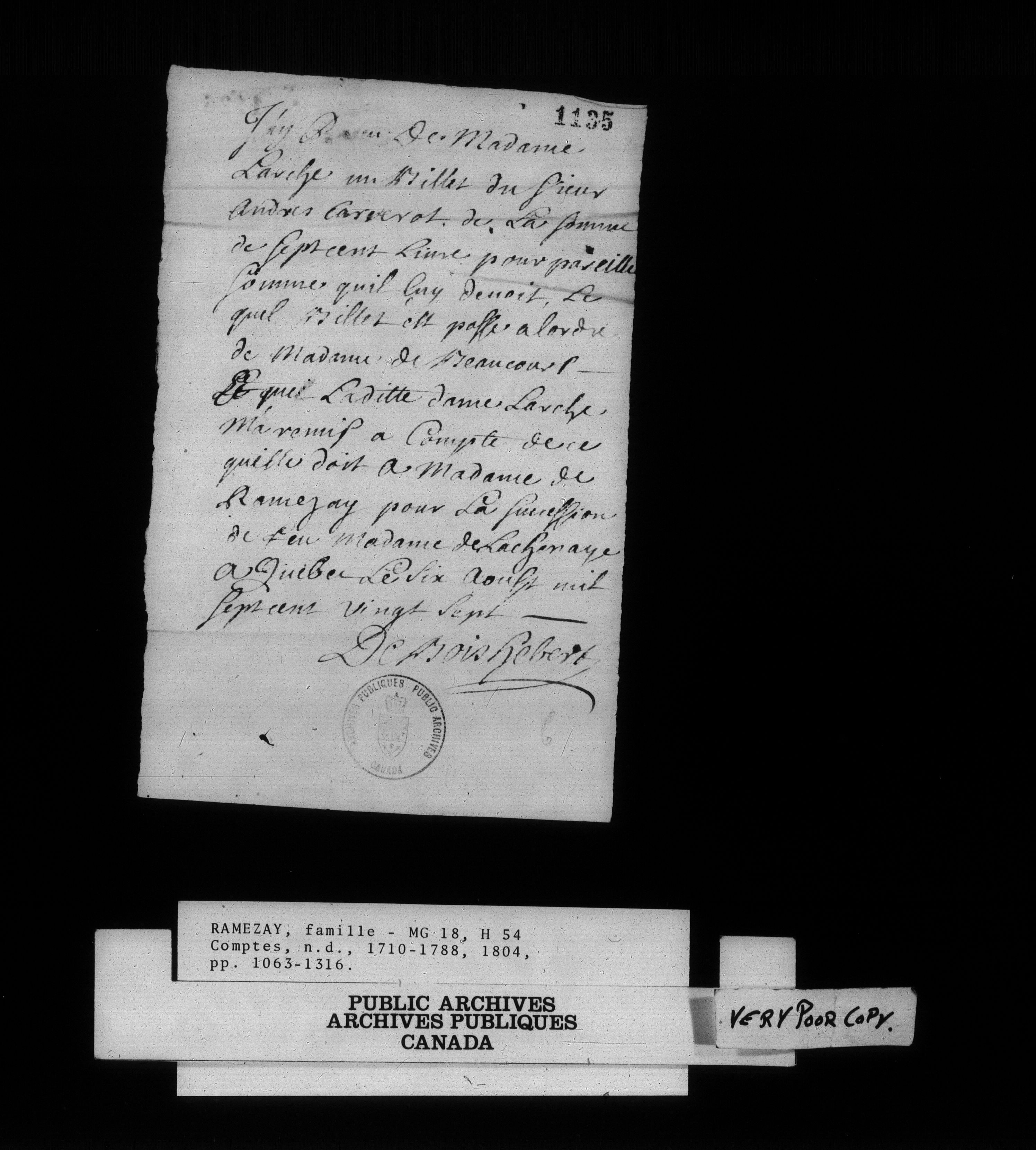 Fonds de la famille de Ramezay : C-15683