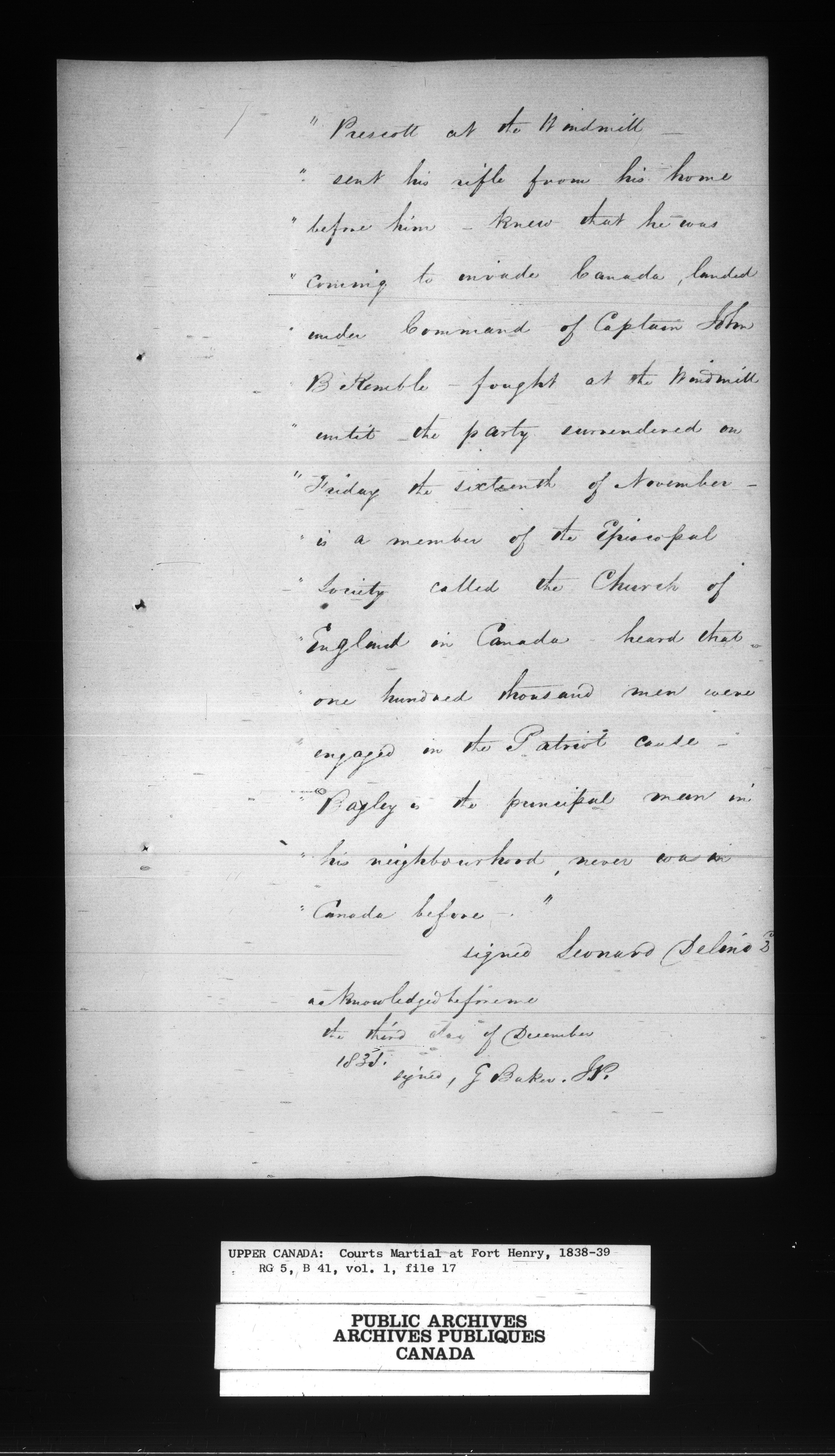 RG 5, Upper Canada Records relating to the Rebellion of 1837-1838 - 15691