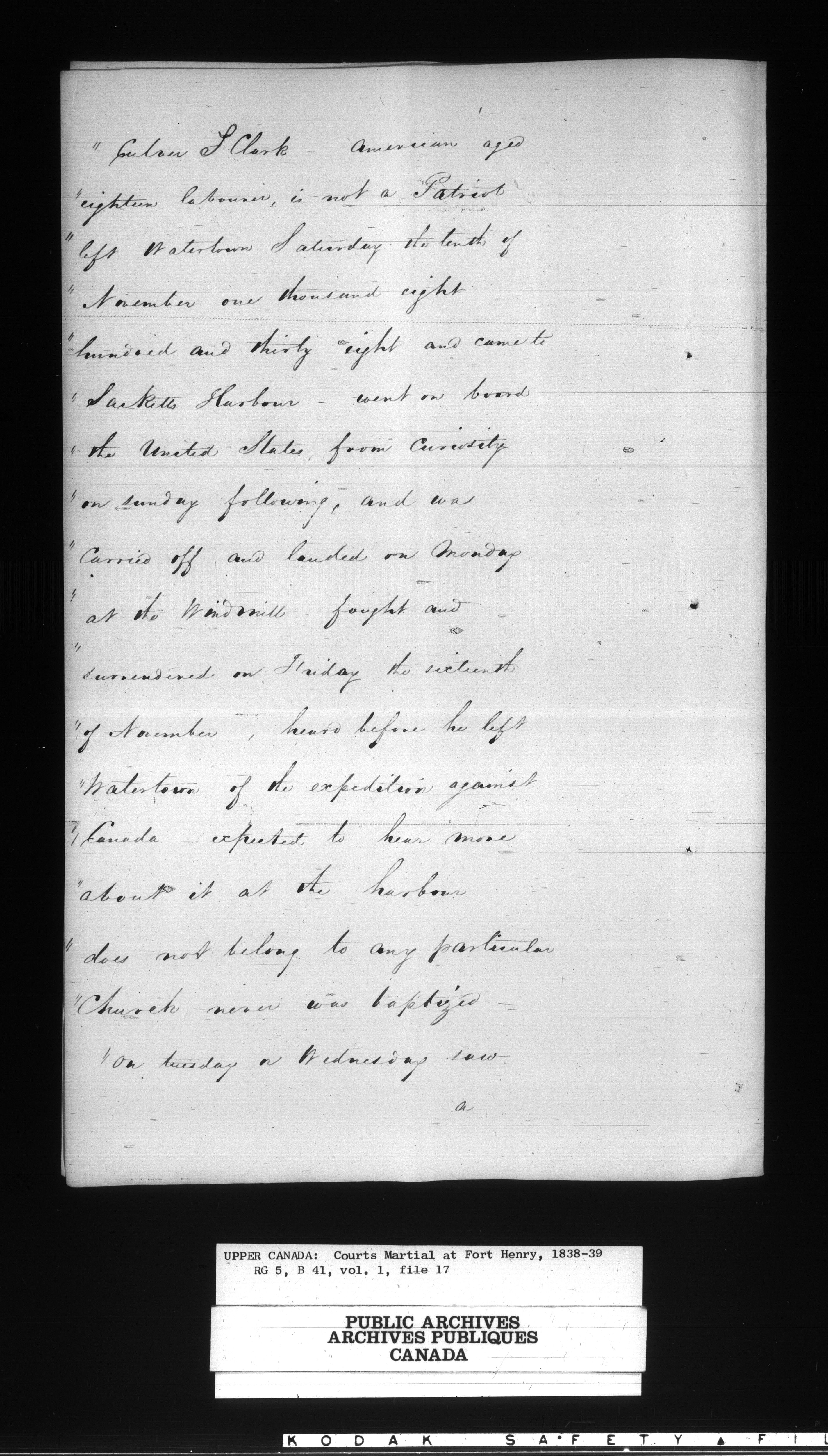 RG 5, Upper Canada Records relating to the Rebellion of 1837-1838 - 15691