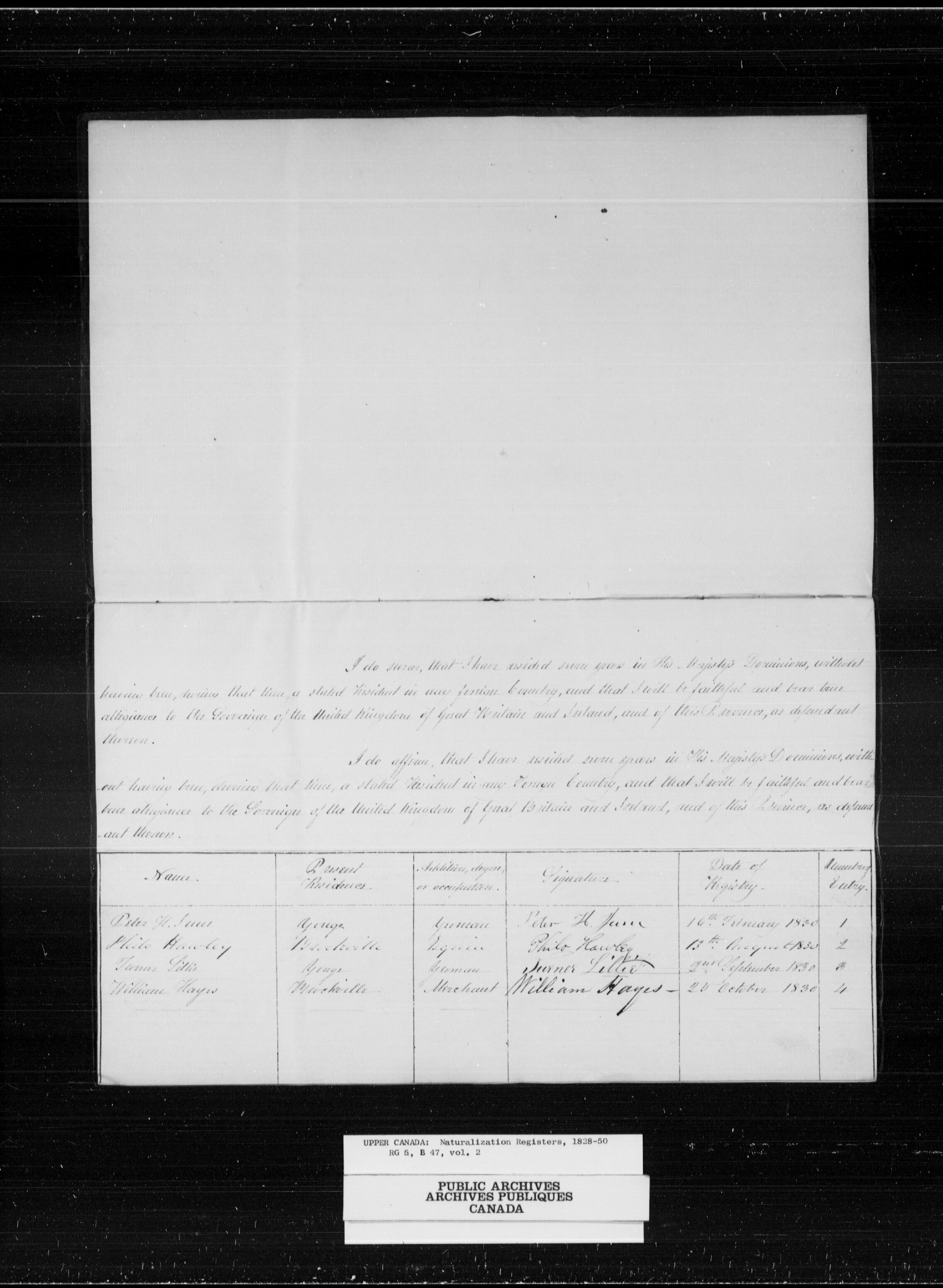 Additional title: Upper Canada : Naturalization Registers, 1828-49