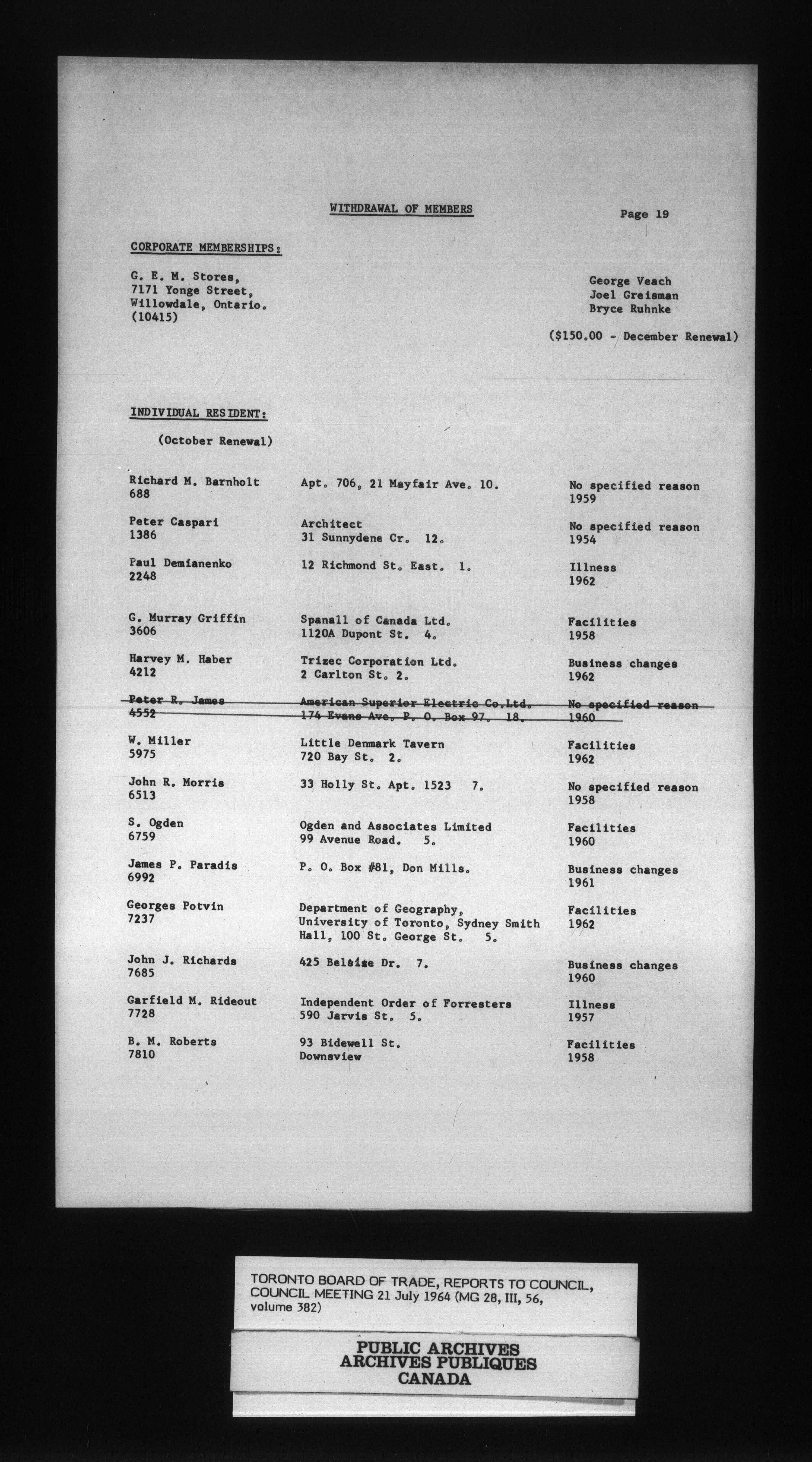 Toronto Board of Trade : reports to council : C-15700