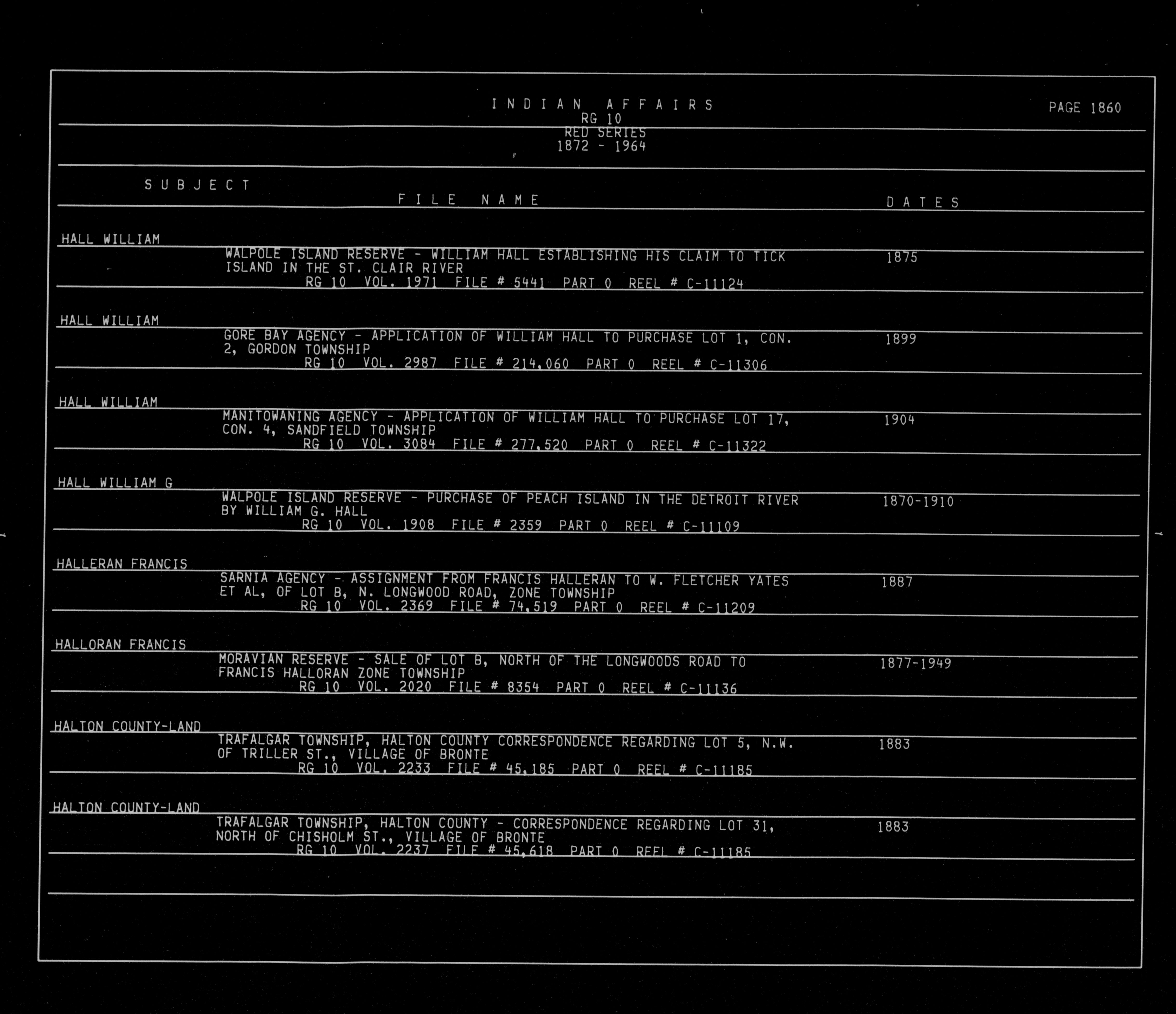 Subject list to the Red Series documents of the Department of Indian Affairs - 15713