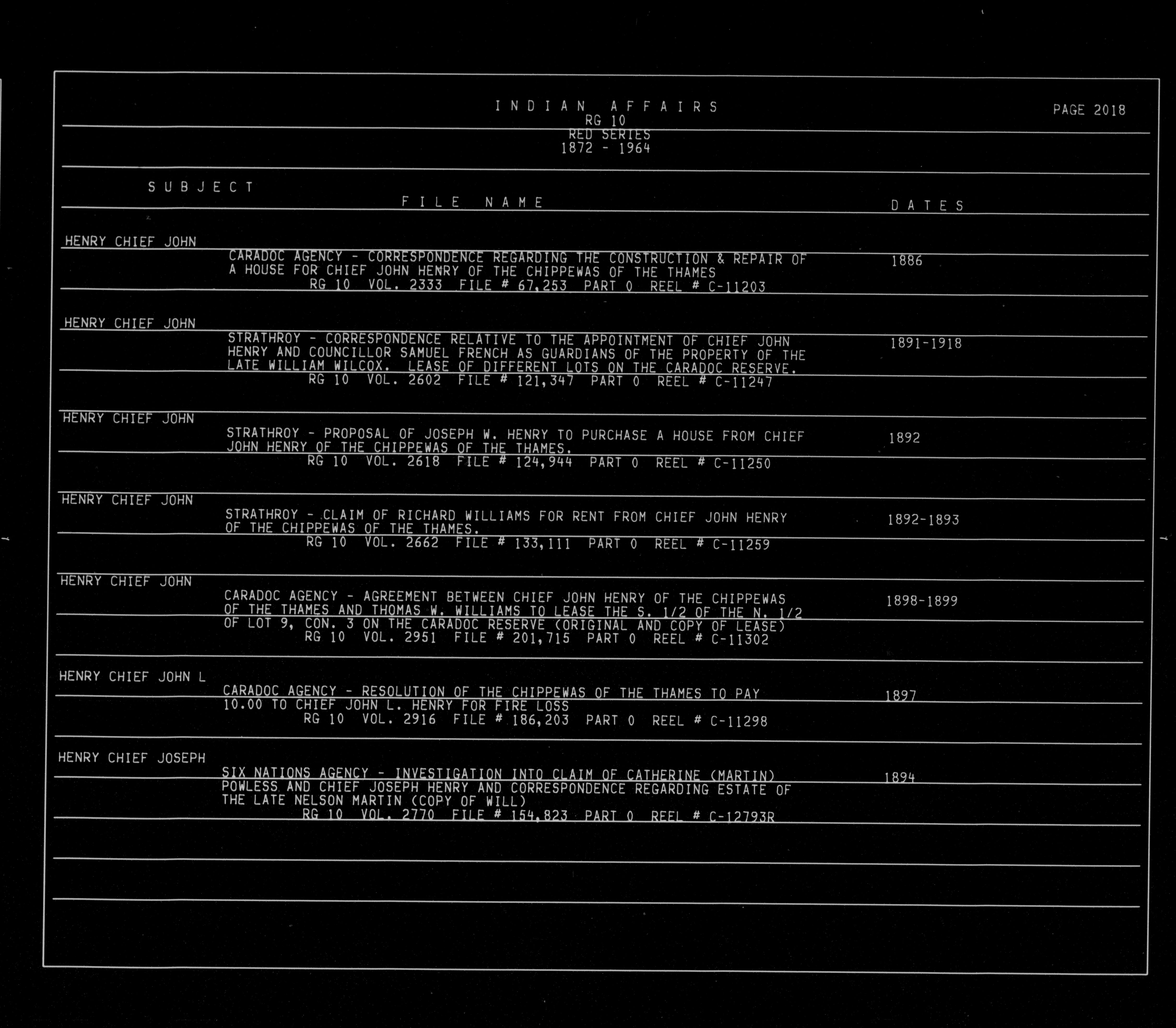 Subject list to the Red Series documents of the Department of Indian Affairs - 15714