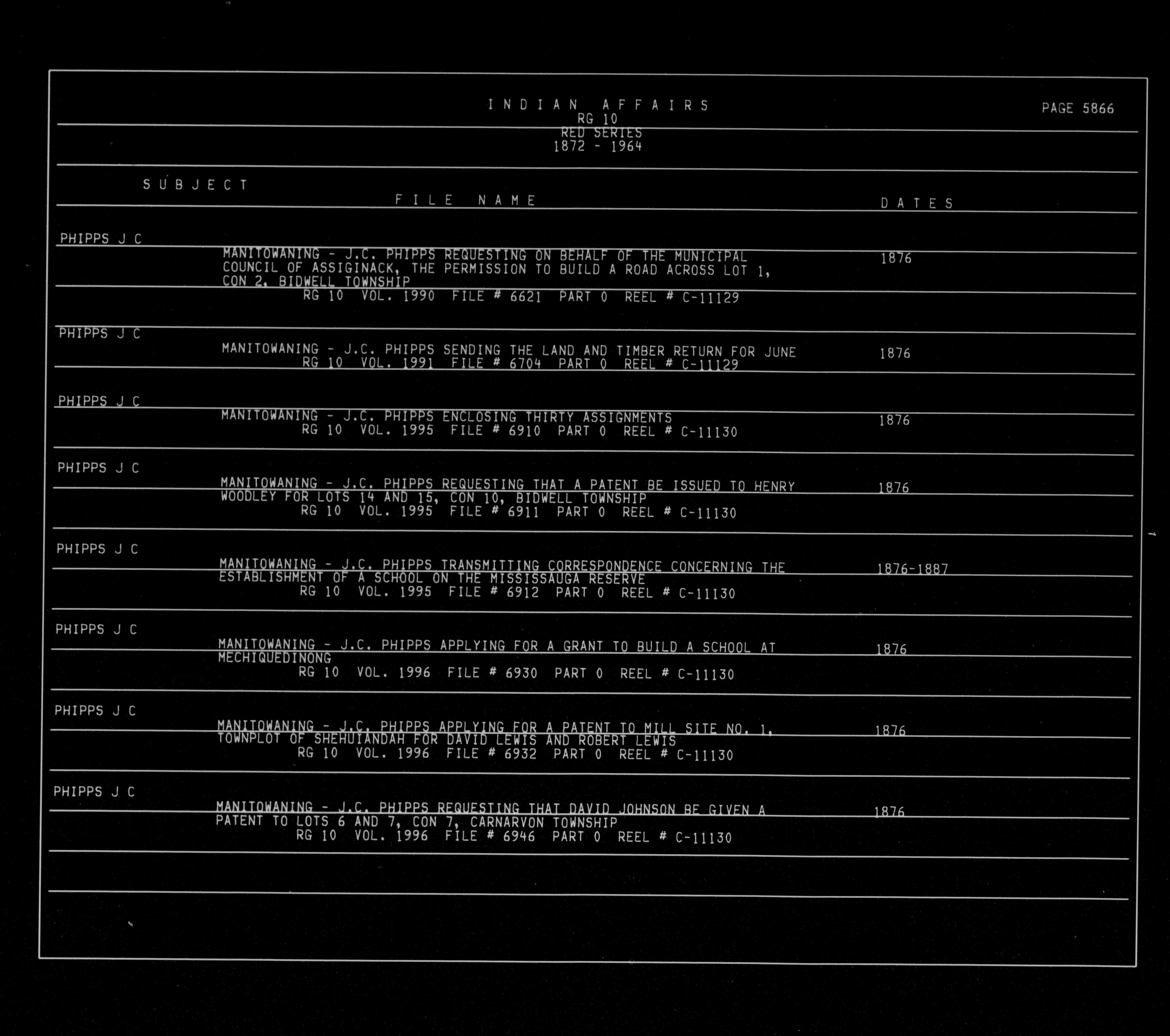 Subject list to the Red Series documents of the Department of Indian Affairs - 15715