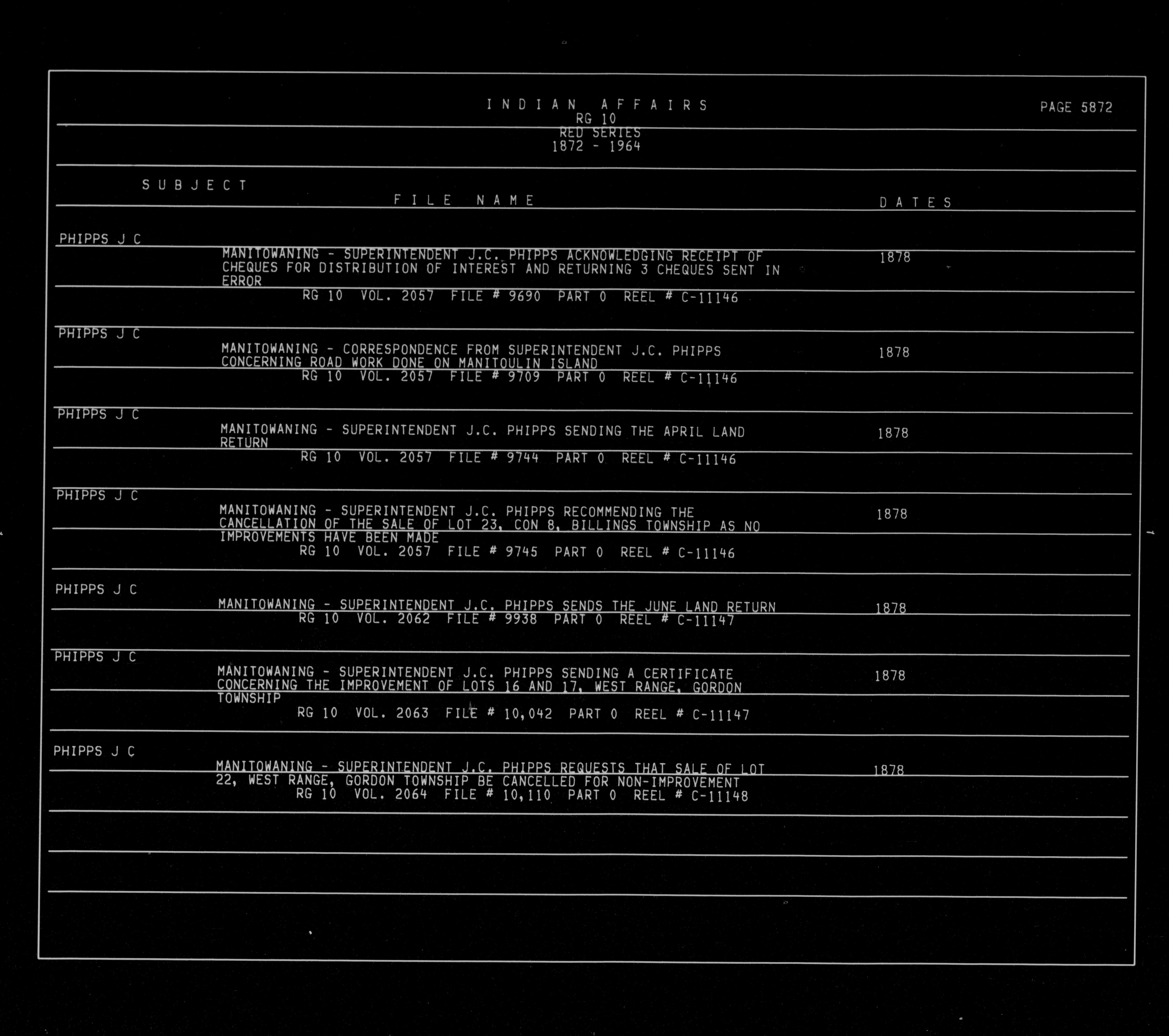 Subject list to the Red Series documents of the Department of Indian Affairs - 15715