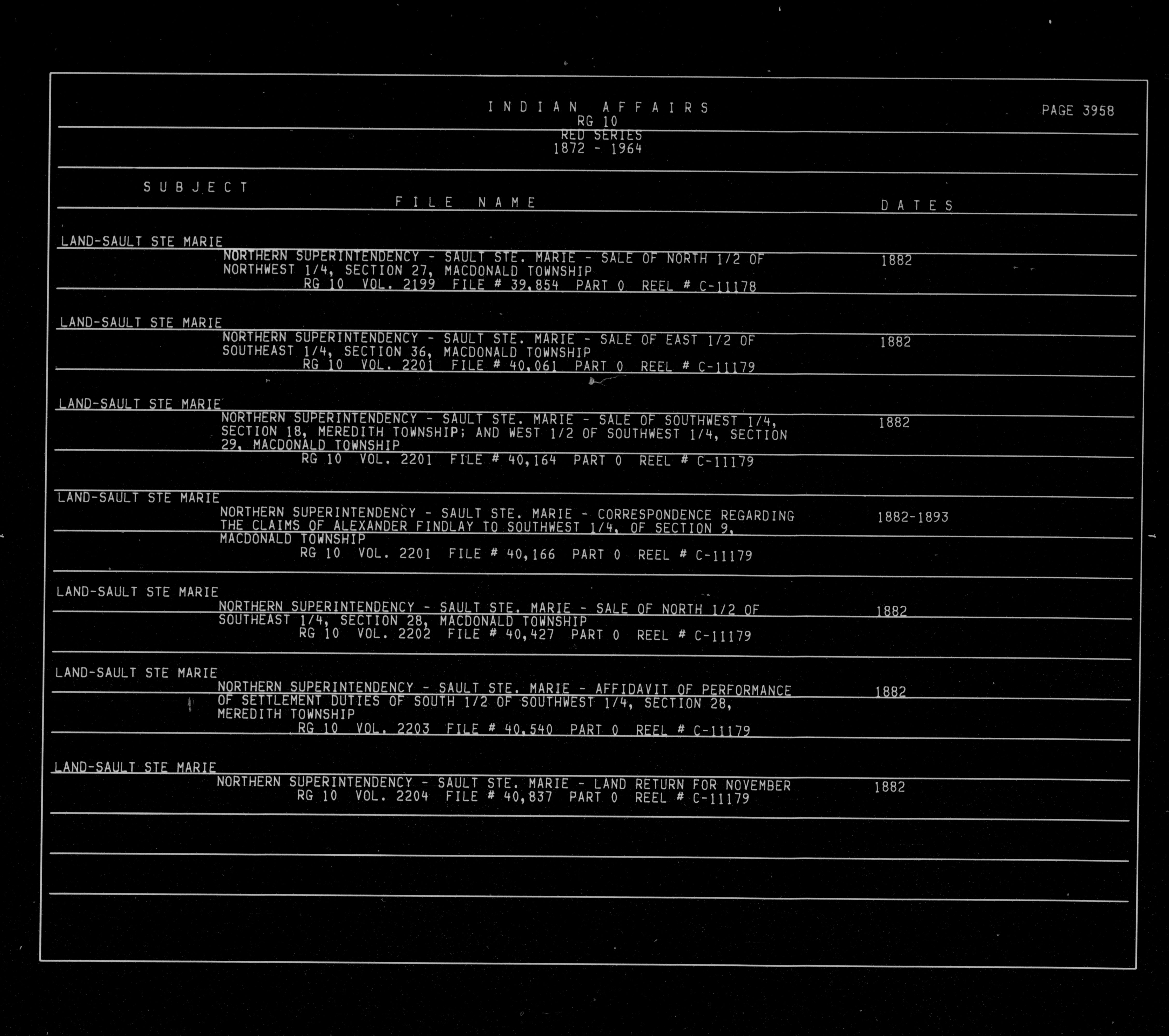Subject list to the Red Series documents of the Department of Indian Affairs - 15715