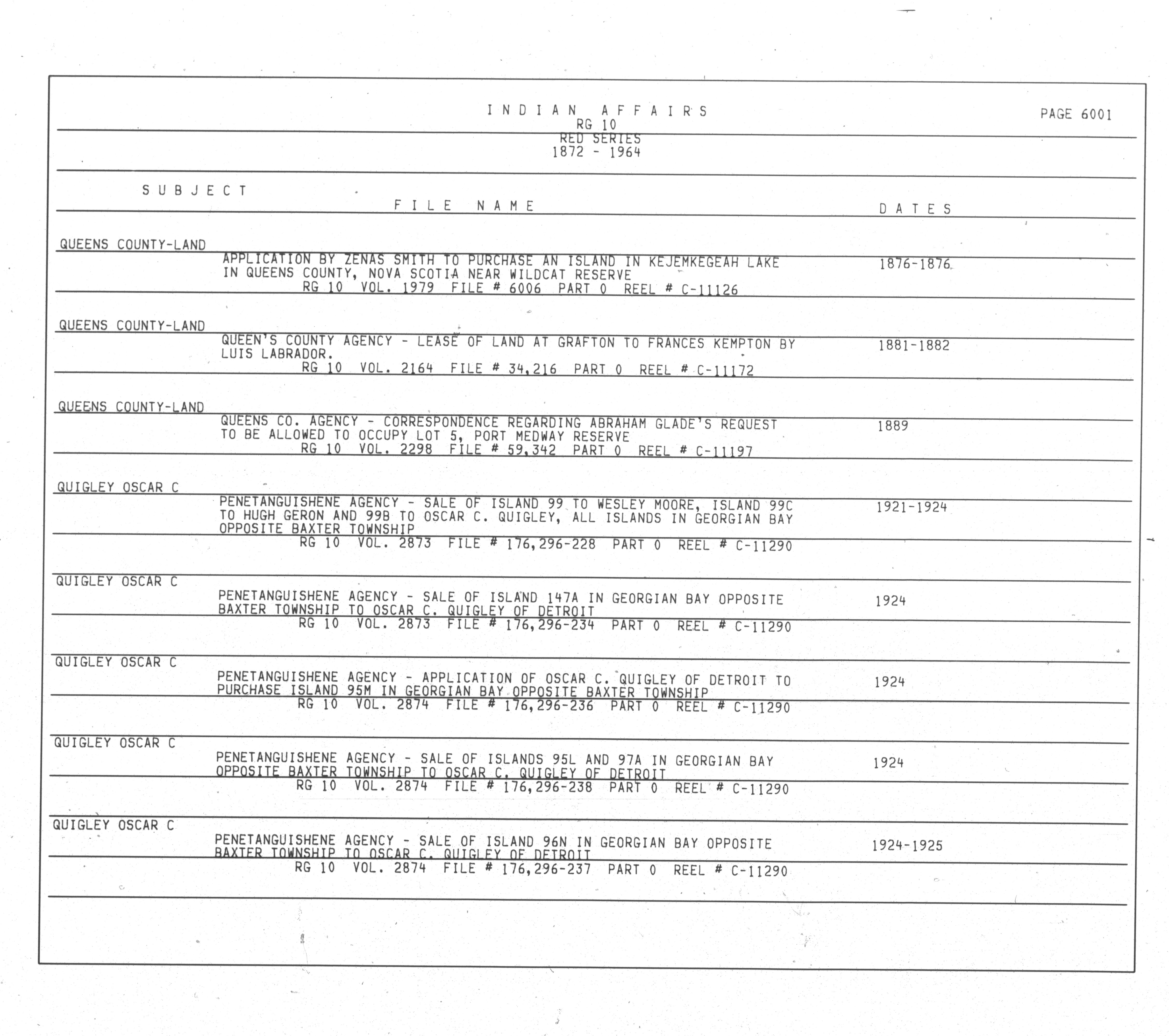 Subject list to the Red Series documents of the Department of Indian Affairs, 1872-1964 - 15716