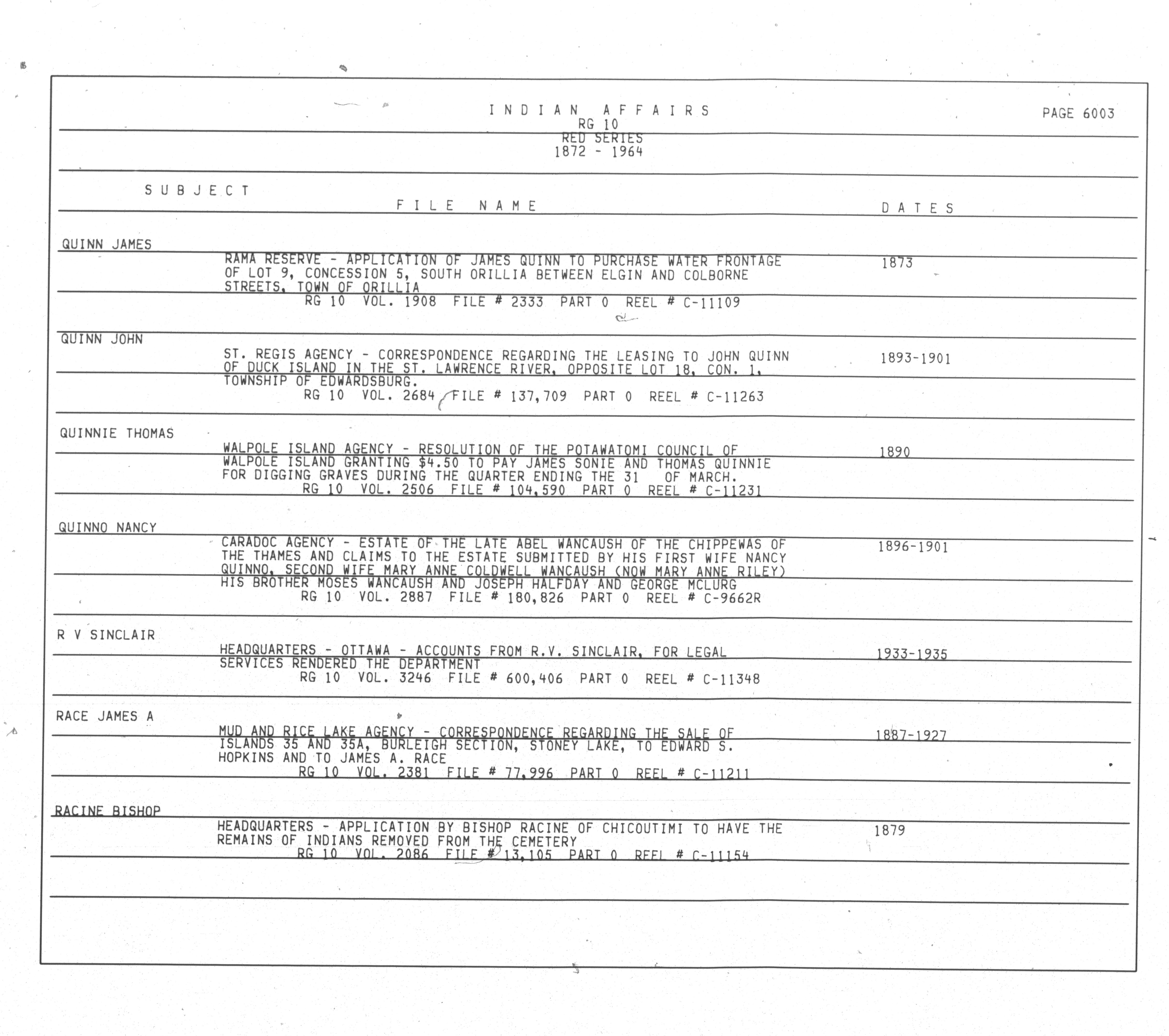 Subject list to the Red Series documents of the Department of Indian Affairs, 1872-1964 - 15716